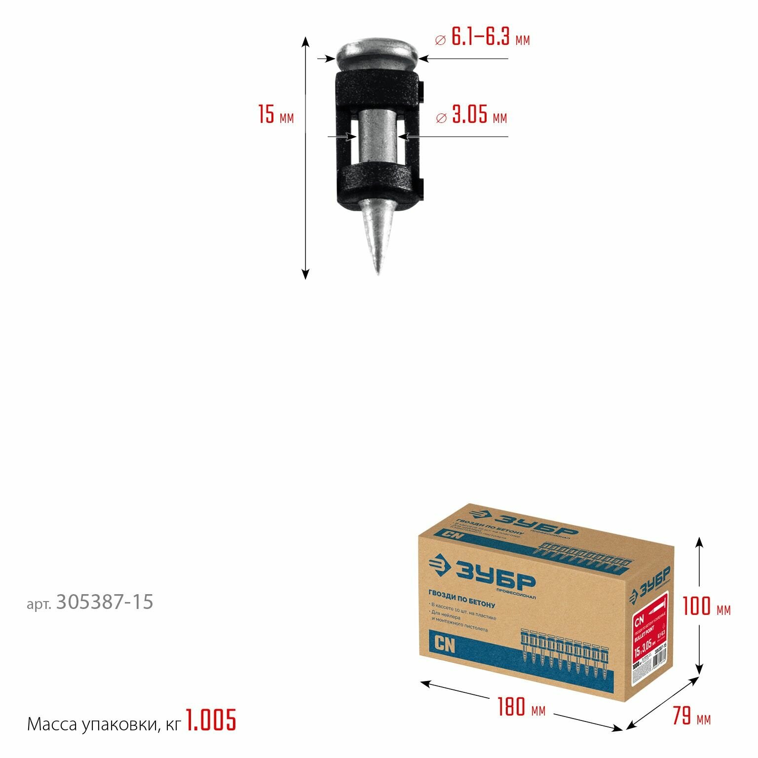 Купить Гвозди по бетону оцинкованные, CN усиленные bullet point 15 х 3.05 мм, ЗУБР, 1000 шт