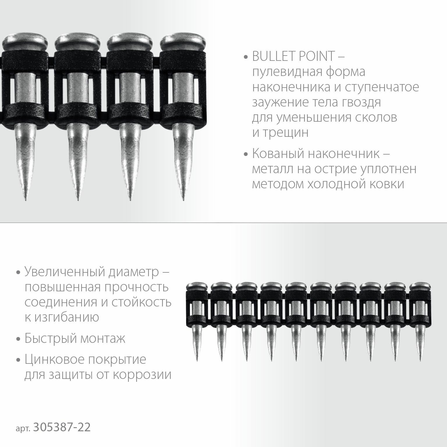 Купить Гвозди по бетону оцинкованные, CN усиленные bullet point 22 х 3.05 мм, ЗУБР, 1000 шт