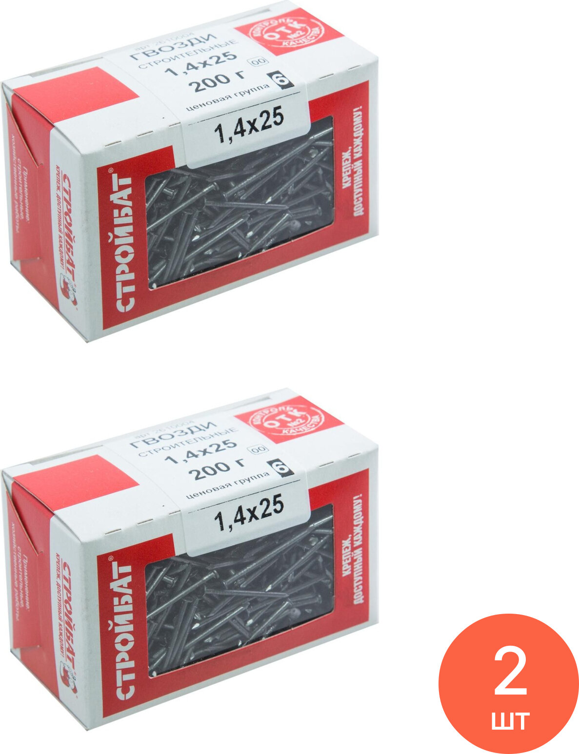 Купить Гвозди строительные Стройбат стальные, 1.4×25мм, 0.2кг / крепеж и фурнитура (комплект из 2 шт)