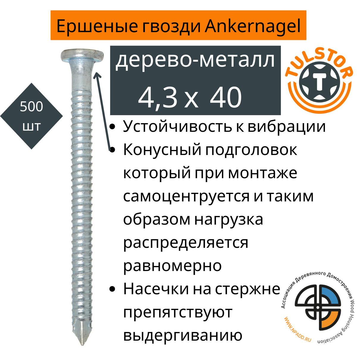 Ершеный гвоздь 4,3х40 Ankernagel голубая оцинковка упак 500шт. интересное: