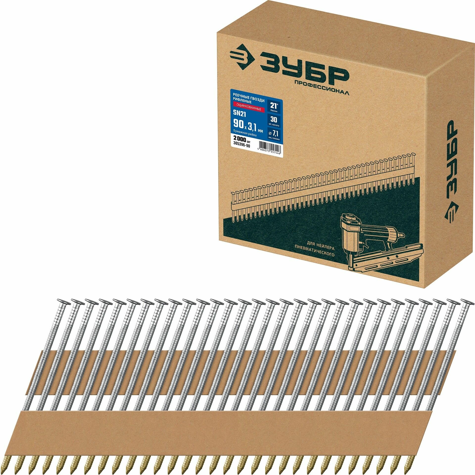 Гвозди ЗУБР SN21 90 х 3.1 мм, реечные рифленые оцинкованные, 2010 шт(305396-90) интересное: