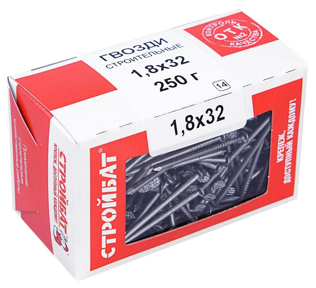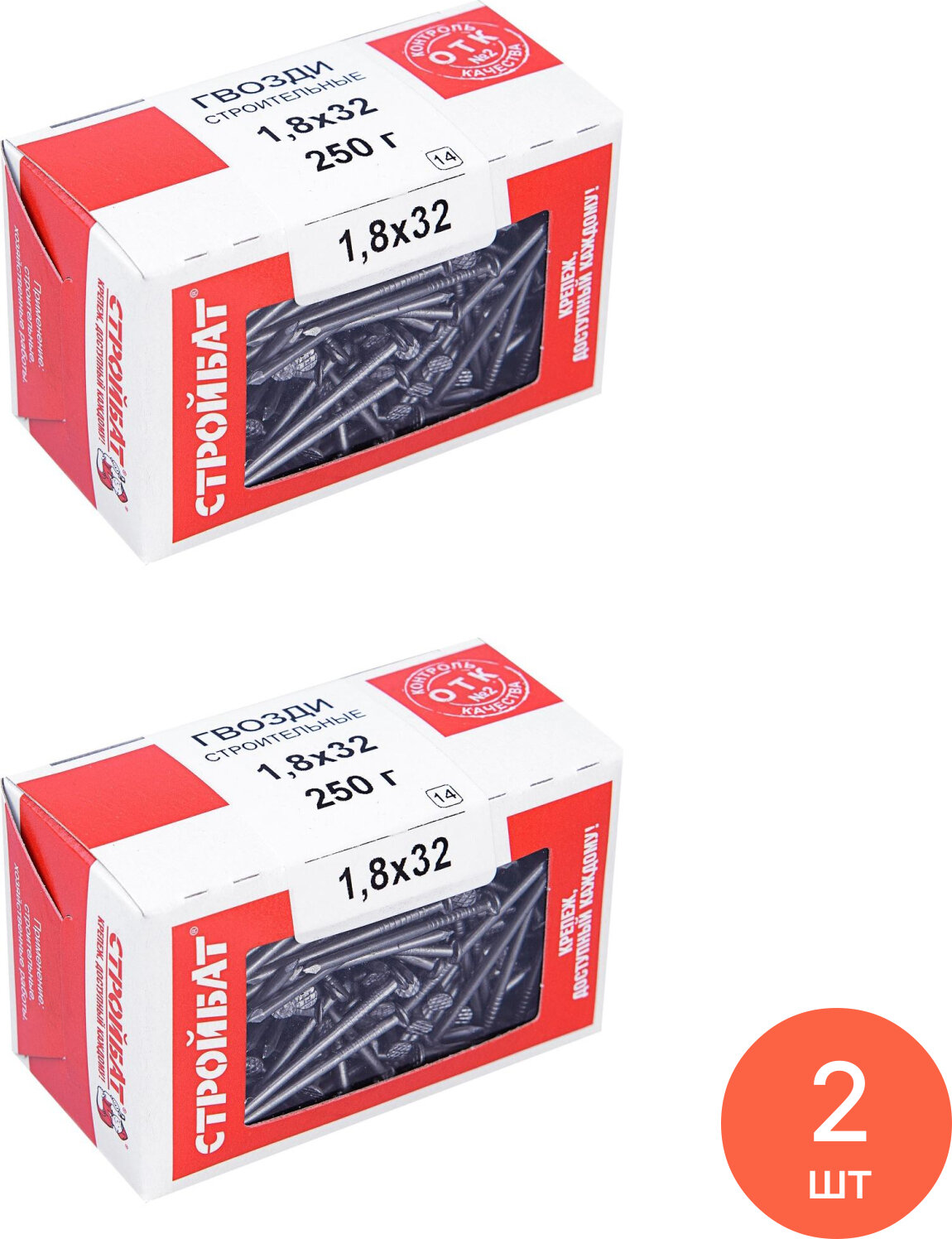 Купить Гвозди строительные Стройбат стальные, 1.8×32мм, 0.25кг / крепеж и фурнитура (комплект из 2 шт)
