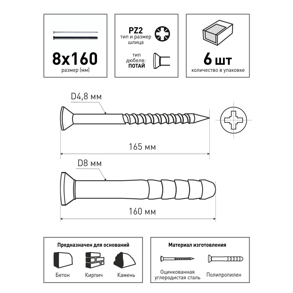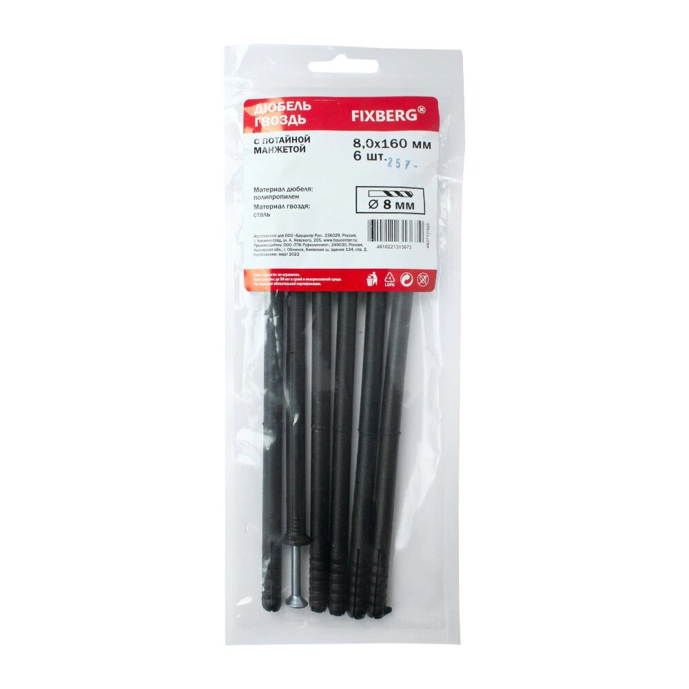 Дюбель-гвоздь с потайной манжетой FIXBERG 8х160 мм 6 шт интересное: