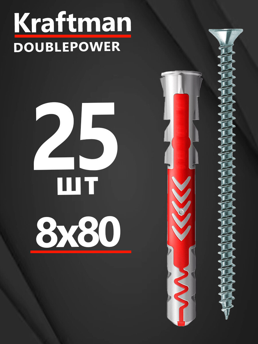 Дюбель универсальный 8х80 DOUBLEPOWER крафтман с саморезом, 25 штук интересное: