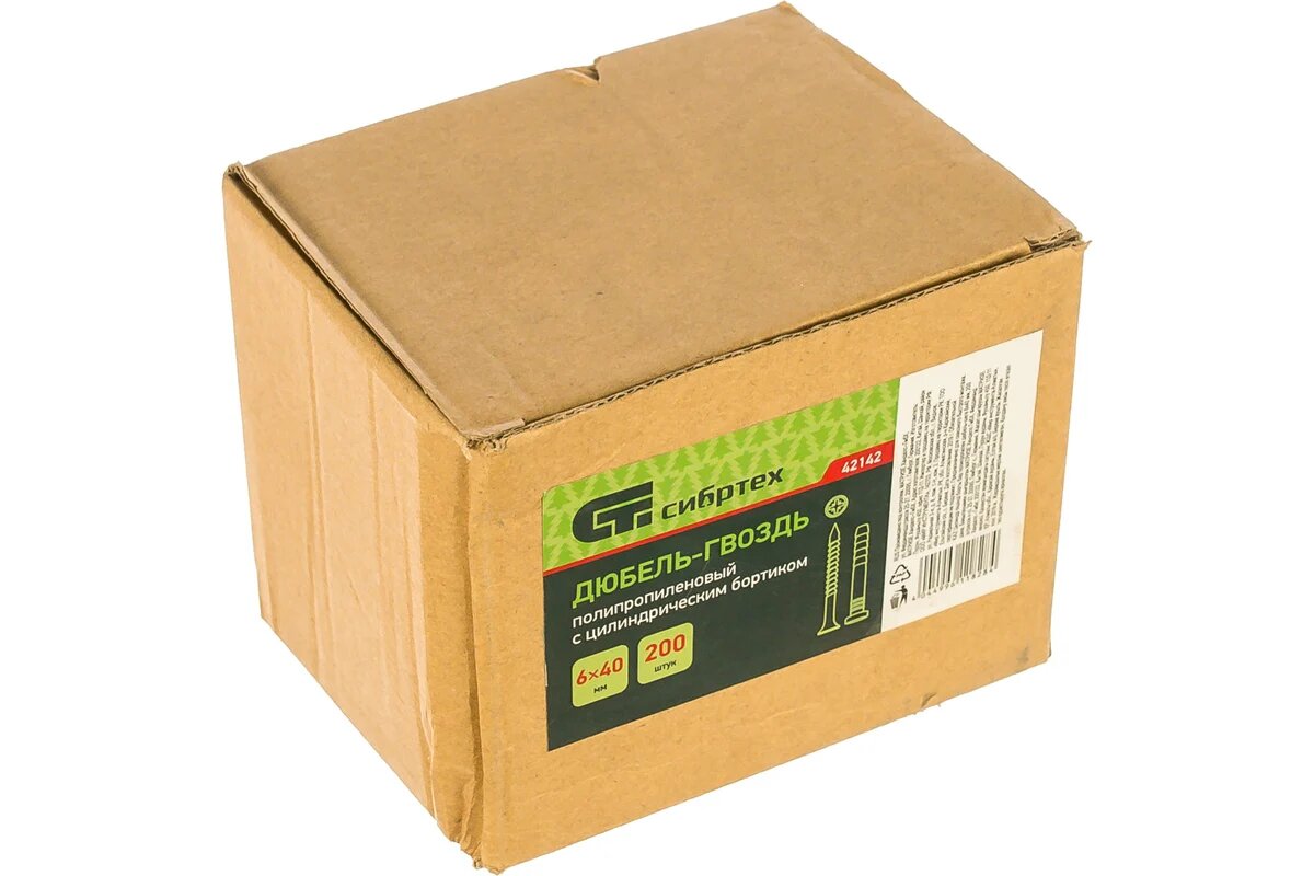 Купить Дюбель-гвоздь Сибртех полипропиленовый с цилиндрическим бортиком 6 х 40 мм , 200 шт 42142