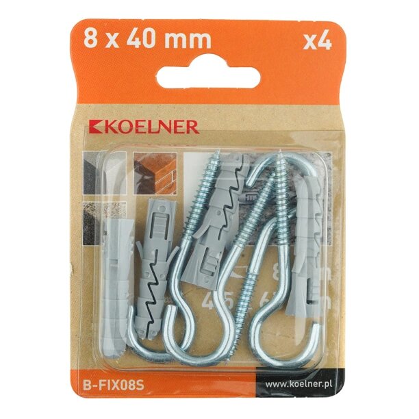 Купить Дюбель распорный KOELNER FIX08S 8х40 мм с S-крюком 5х65 мм 4 шт
