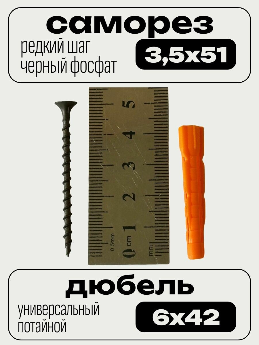 Набор дюбель+саморез (Дюбель оранжевый морковка 6*42-100шт, саморез оксид. 3,5*51-100шт.) интересное: