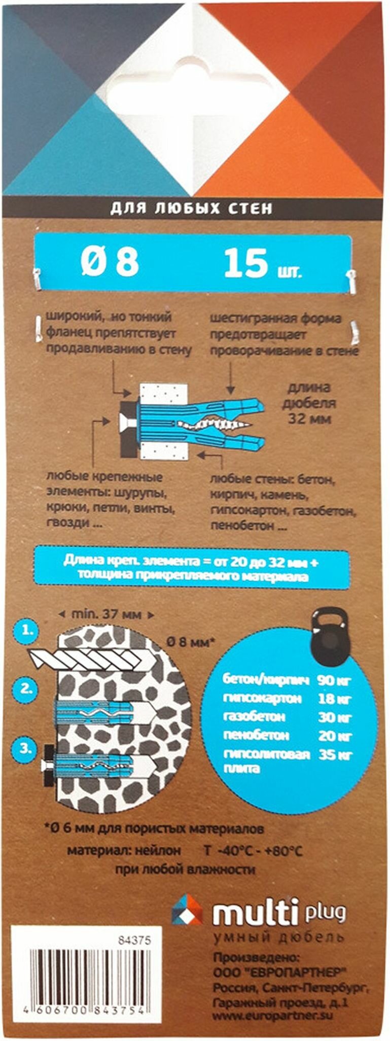 Дюбель универсальный распорный европартнер MULTI Plug 8x32 мм 15 шт интересное: