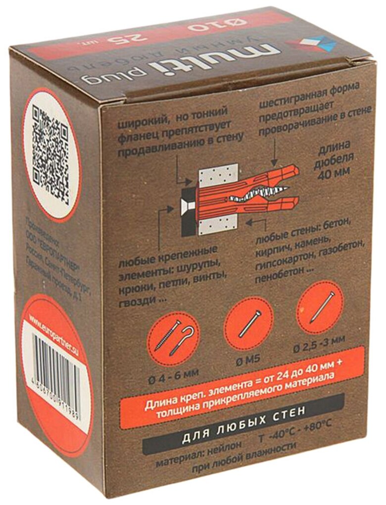 Дюбель универсальный распорный европартнер MULTI Plug 10x40 мм 25 шт интересное: