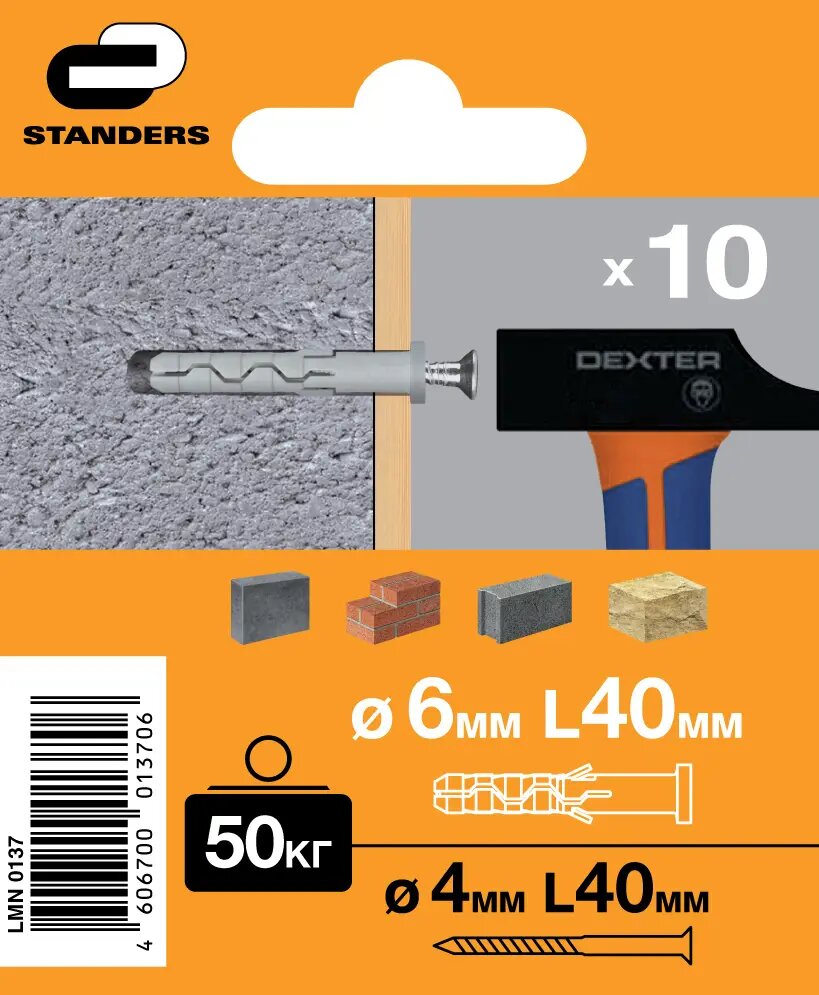 Дюбель потайной Standers PND 8x40 мм, нейлон, 10 шт.