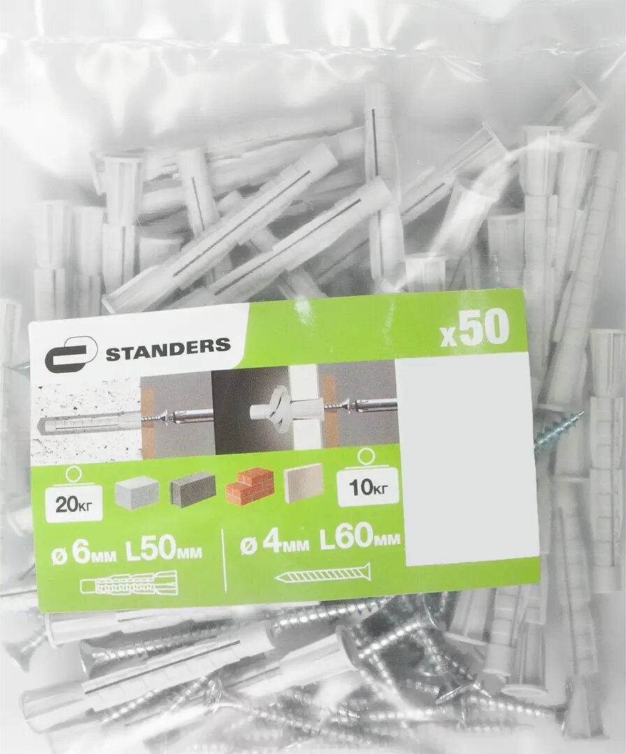 Дюбель потайной Standers PDU N 6x50 мм, с шурупом 4x60 мм, нейлон, 50 шт. интересное: