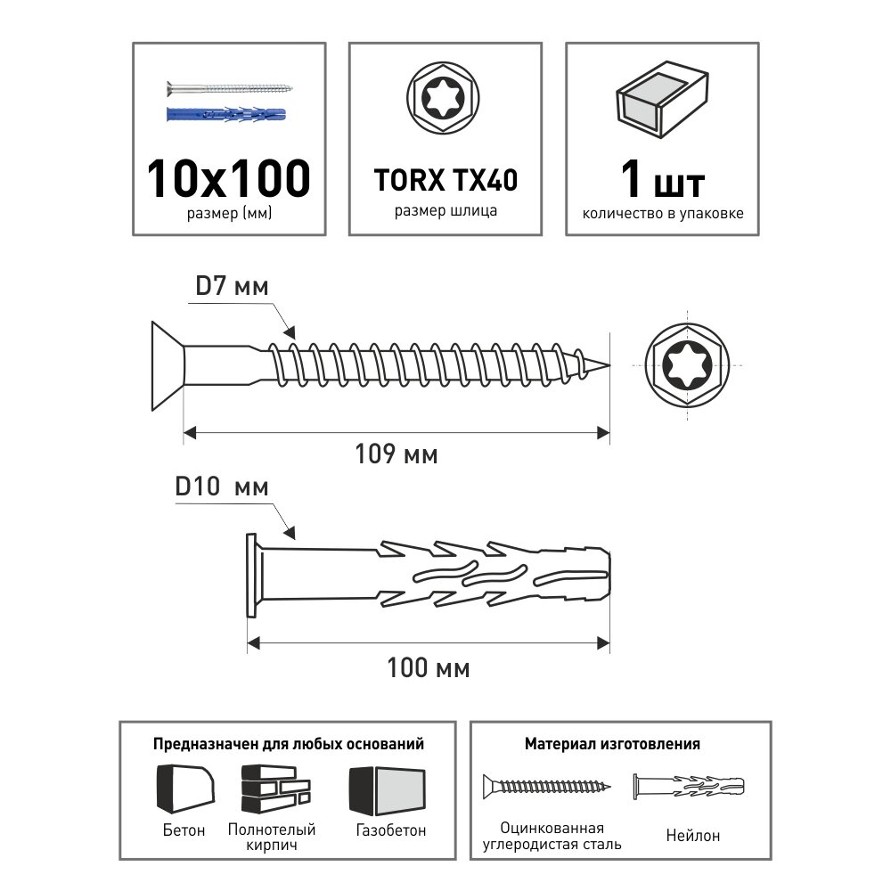 Дюбель рамный Rawlplug R-P5-FF1-N-10L100 10х100 мм с шурупом 7х109 мм интересное: