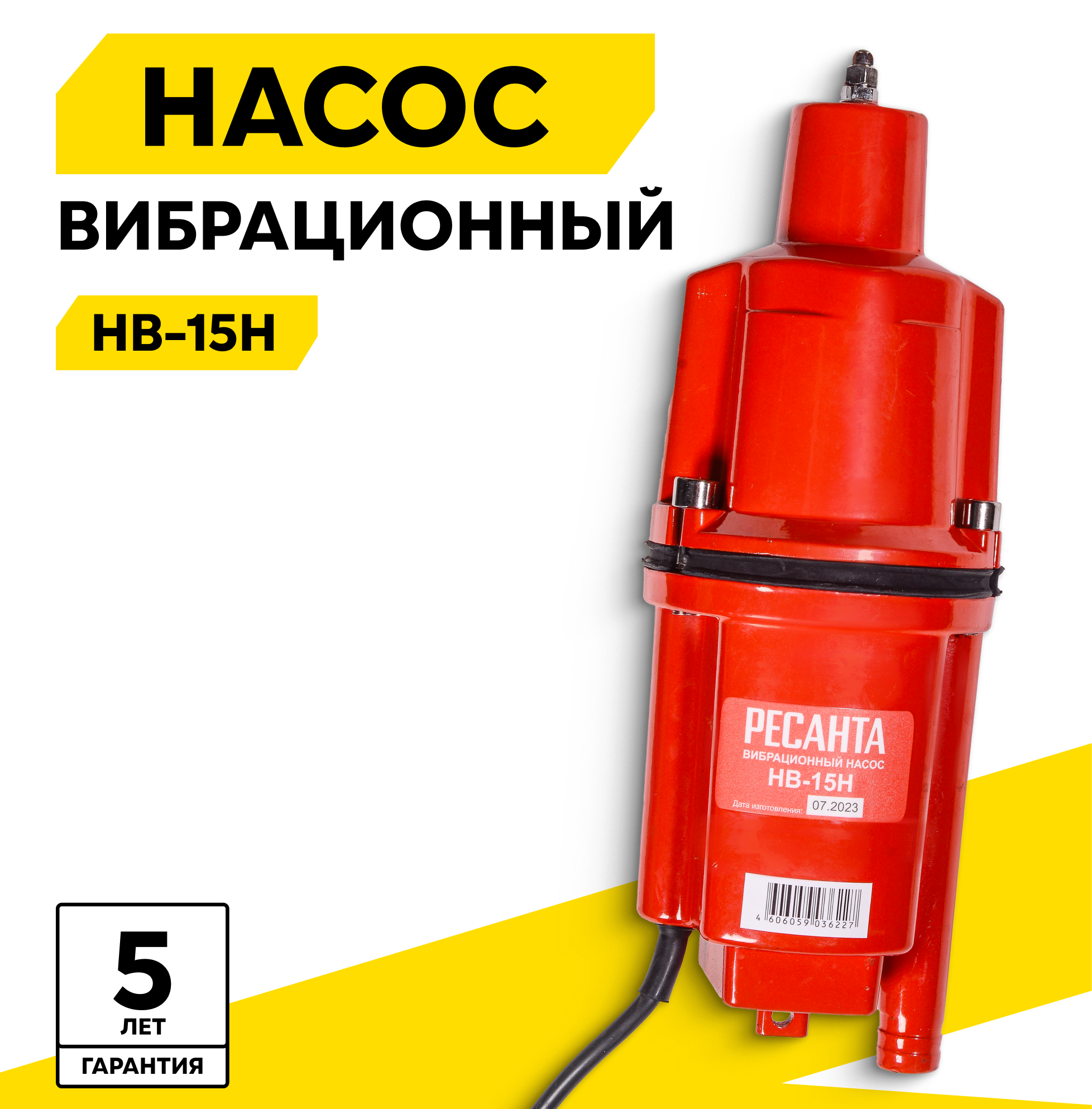 Купить Вибрационный насос Ресанта НВ-15Н, высота подъема 75м, нижний забор воды, кабель 15м