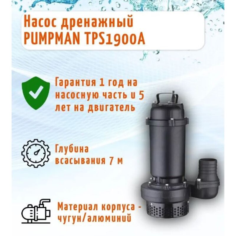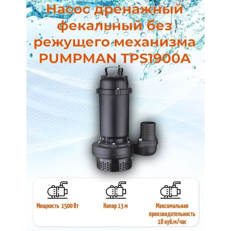 Дренажный насос PUMPMAN TPS1500A (1500 Вт), напор 14м, 300л/мин, подключение 2 дюйма интересное: