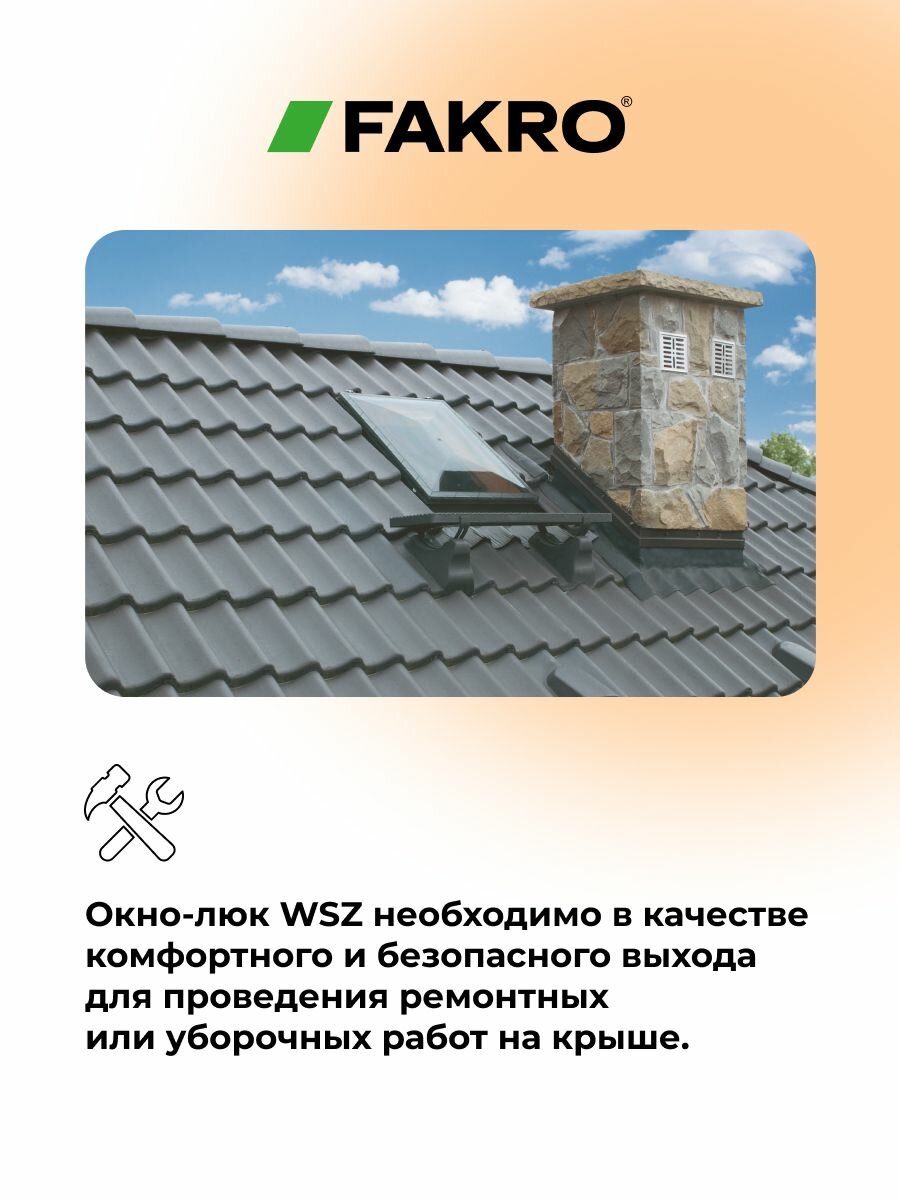 Мансардное окно-люк FAKRO WSZ 86*86 см для выхода на крышу