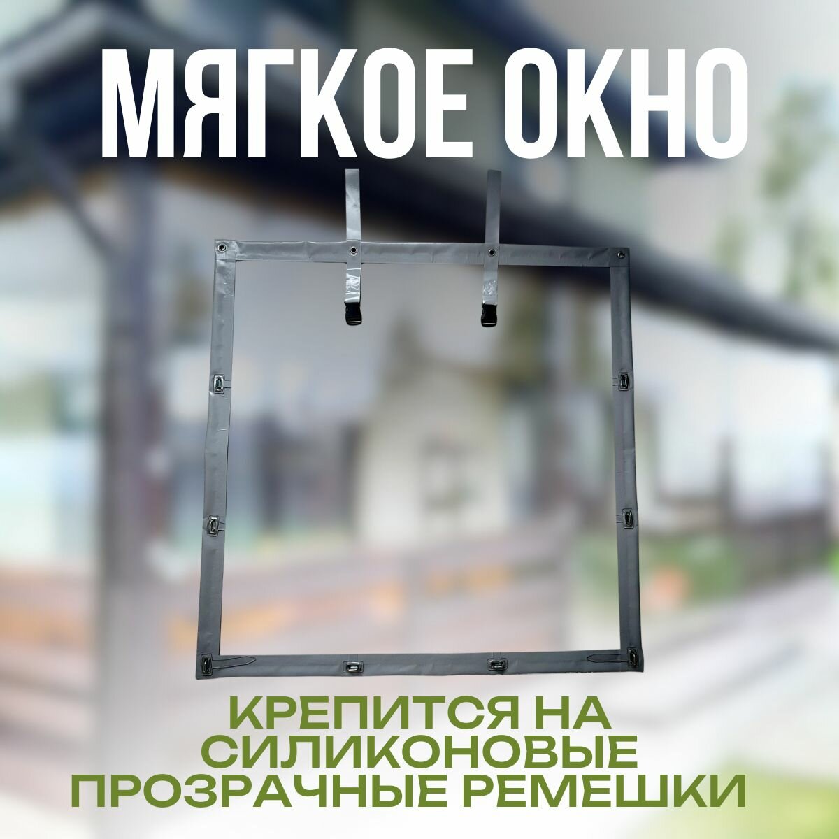 Мягкое окно с креплением на ремешках (Серая окантовка) 110х110 см