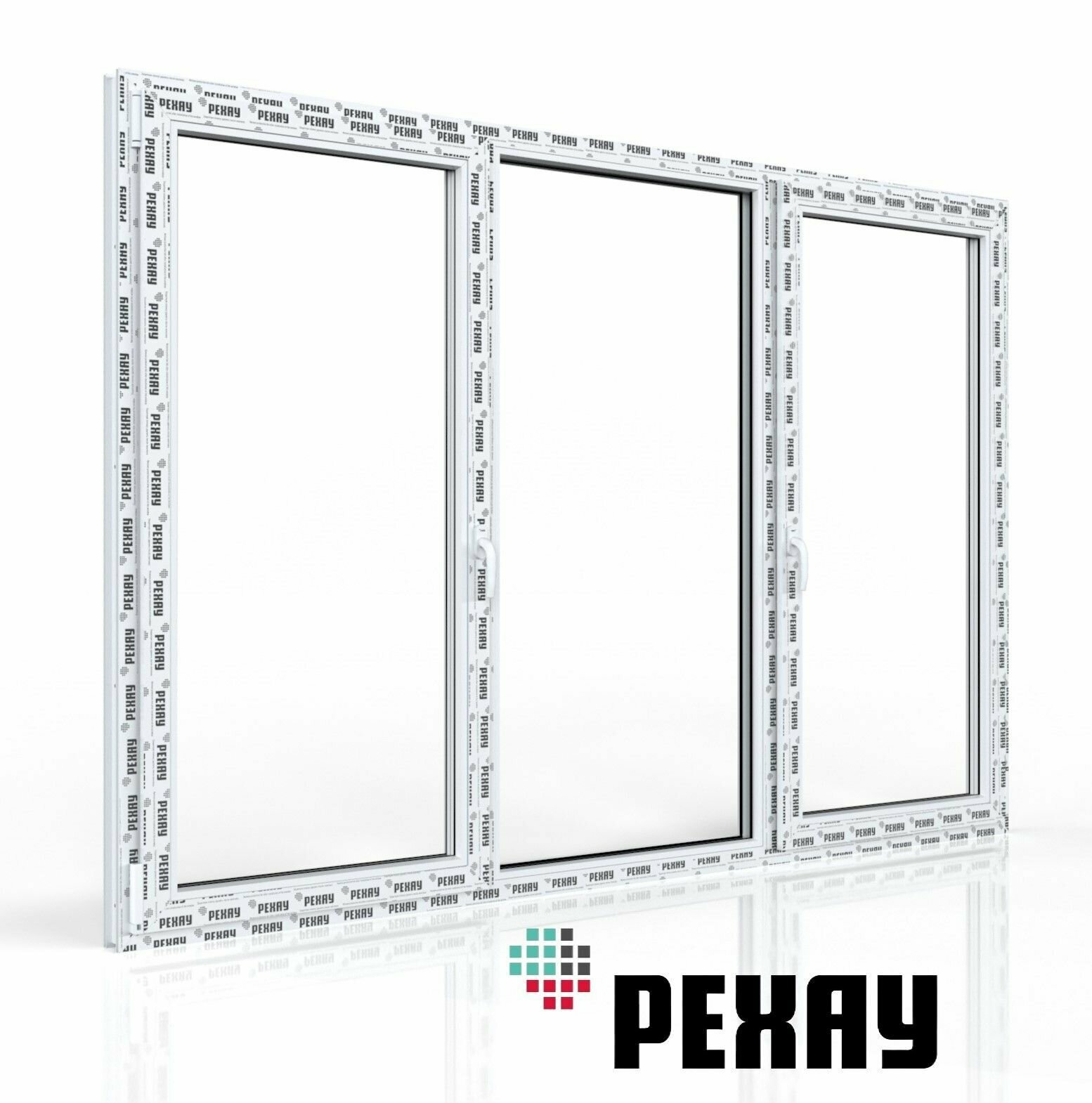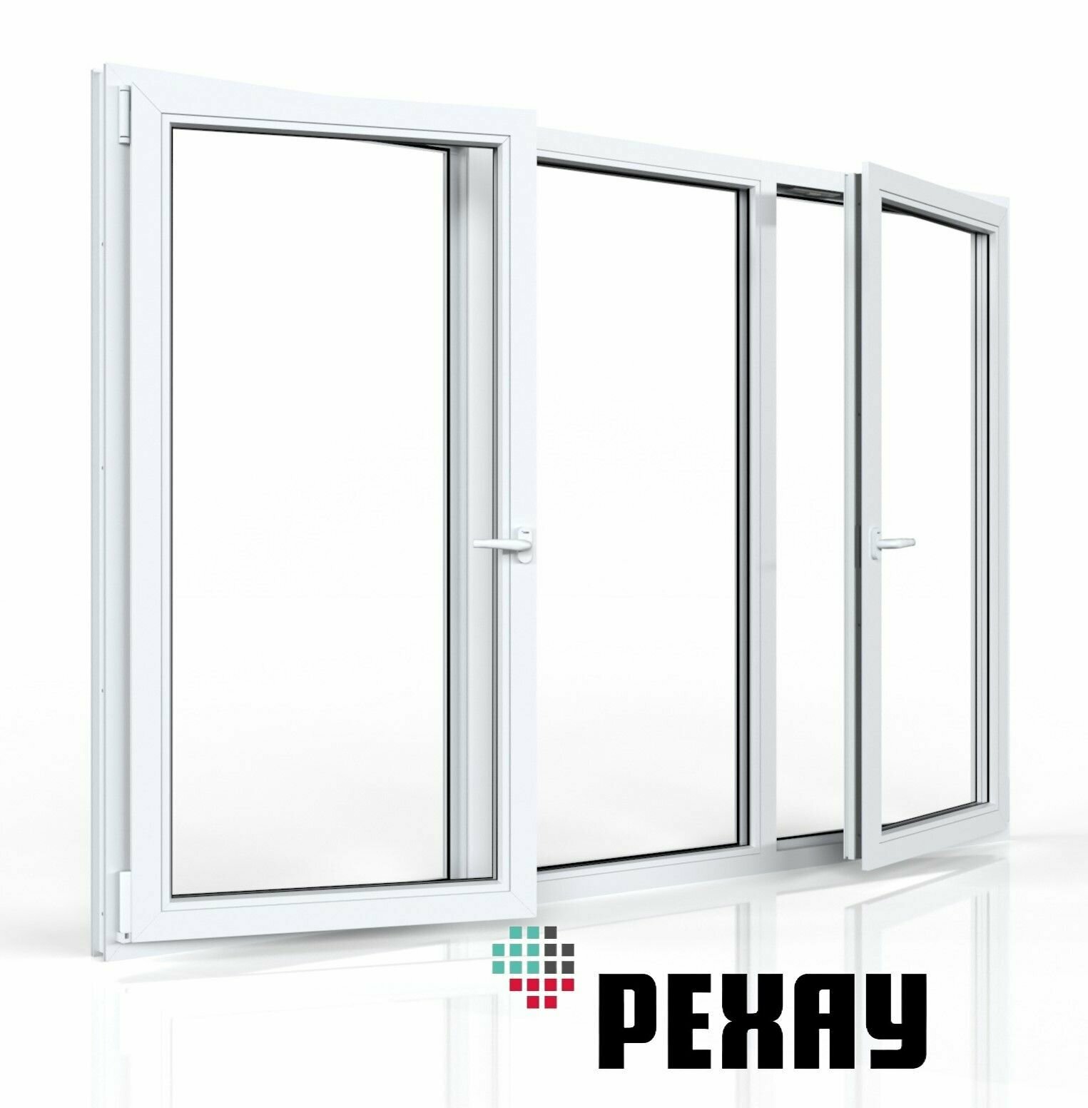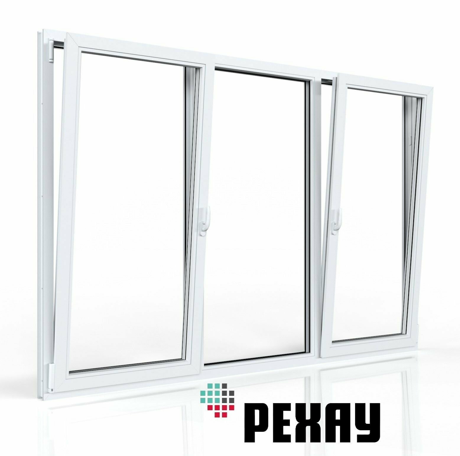 Пластиковое окно ПВХ РЕХАУ BLITZ 1500х2100 мм (ВхШ), трехстворчатое, глухое / поворотно-откидное правое / глухое, двухкамерный стеклопакет белое