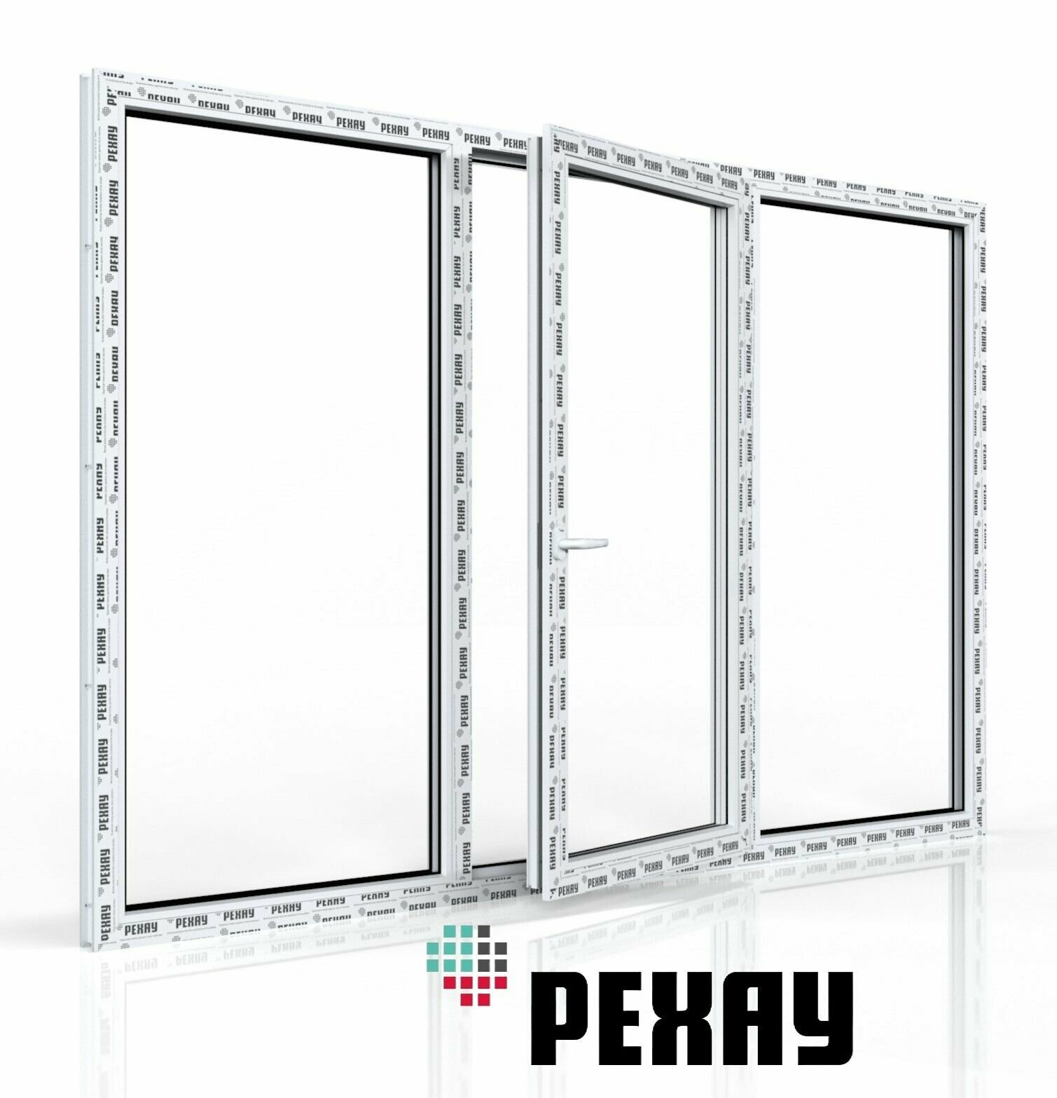 Пластиковое окно ПВХ РЕХАУ BLITZ 1500х2100 мм (ВхШ), трехстворчатое, глухое / поворотно-откидное правое / глухое, двухкамерный стеклопакет белое