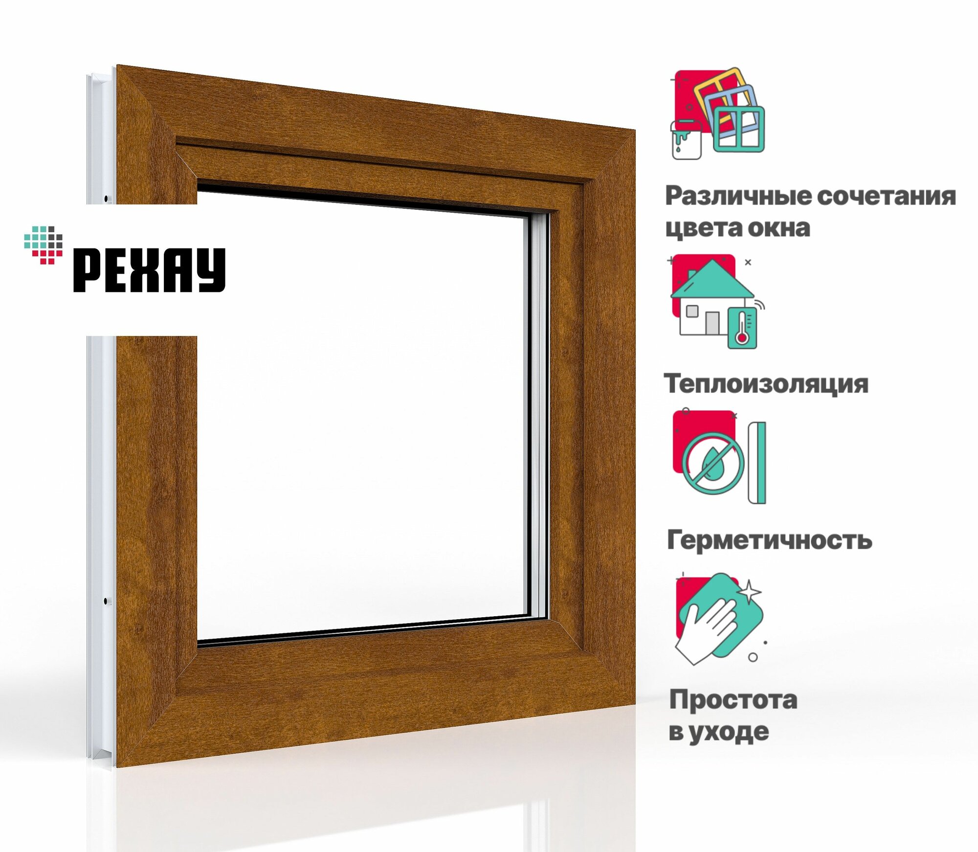 СохранитьПластиковое окно ПВХ РЕХАУ BLITZ 800х800 мм (ВхШ), одностворчатое, поворотно-откидное левое, двухкамерный стеклопакет, золотой дуб интересное: