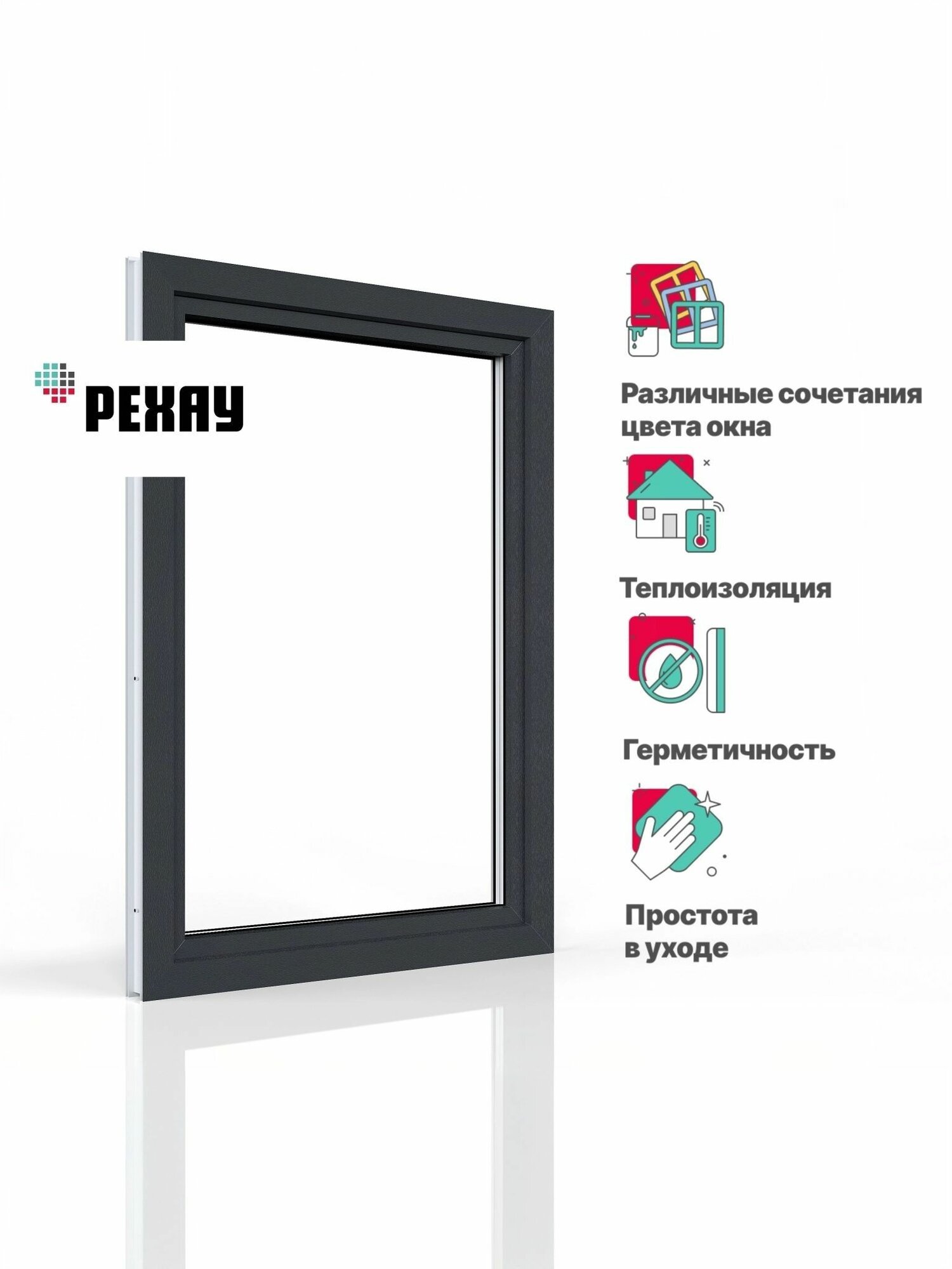 Пластиковое окно ПВХ REHAU BLITZ 1200х600 мм (ВхШ) с учетом подставочного профиля, одностворчатое, поворотно-откидное левое, двухкамерный стеклопакет, антрацитово-серый снаружи