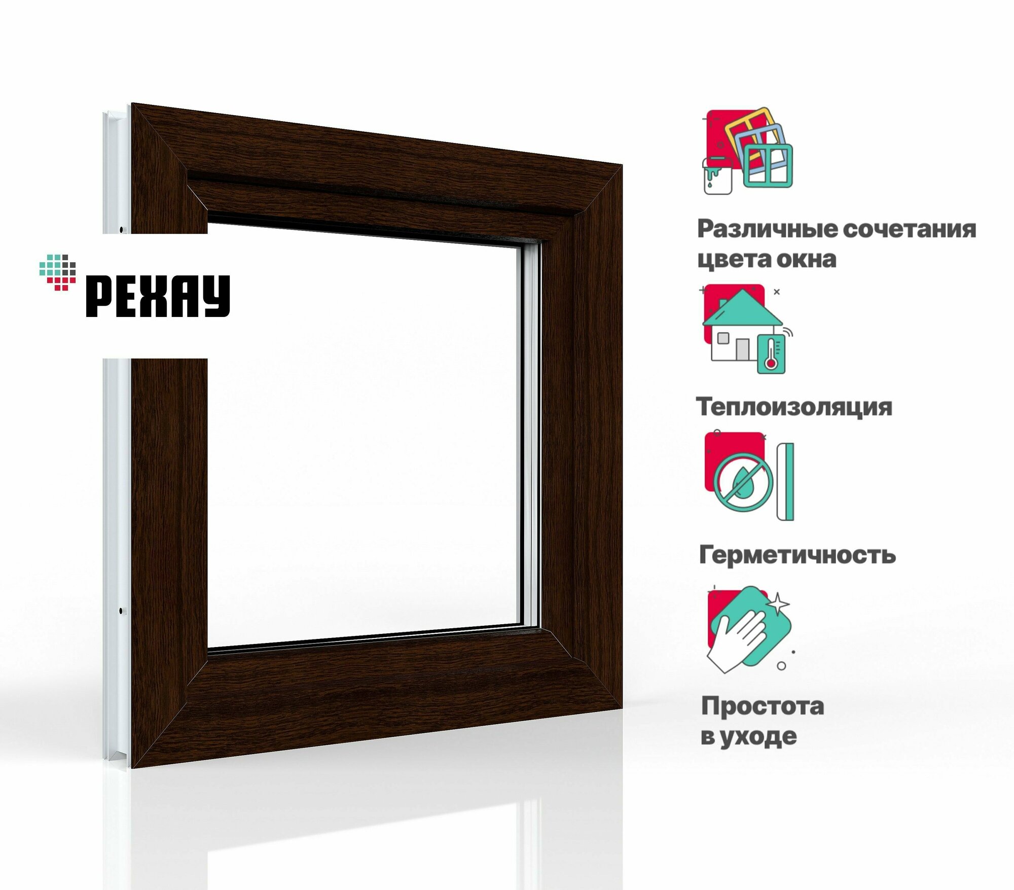 Купить Пластиковое окно ПВХ РЕХАУ BLITZ 1000х1000 мм (ВхШ), одностворчатое, поворотно-откидное левое, двухкамерный стеклопакет, темный дуб снаружи