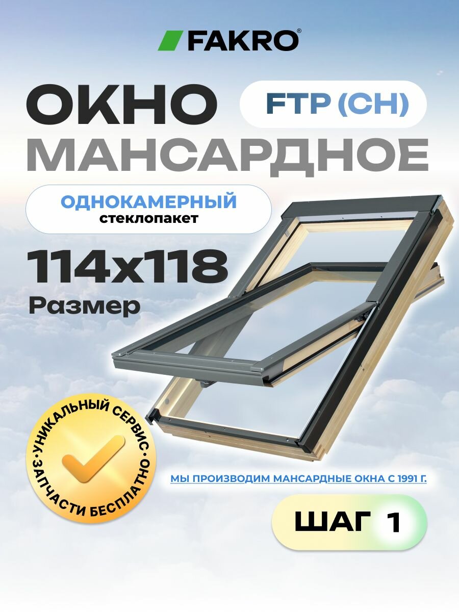 Мансардное окно 114*140 FTP (CH) FAKRO с однокамерным стеклопакетом ( без вентиляционного клапана)