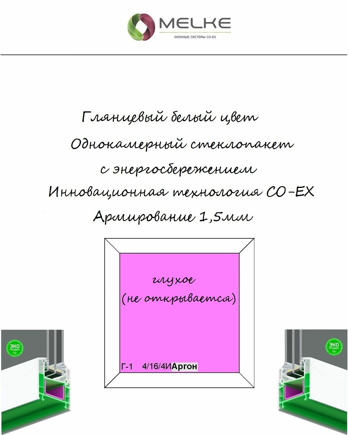 Окно ПВХ (Ширина х Высота) 500х800 Melke 60 мм, глухое (не откр), 1 камерный стеклопакет с энергосбережением, 2 стекла, цвет белый