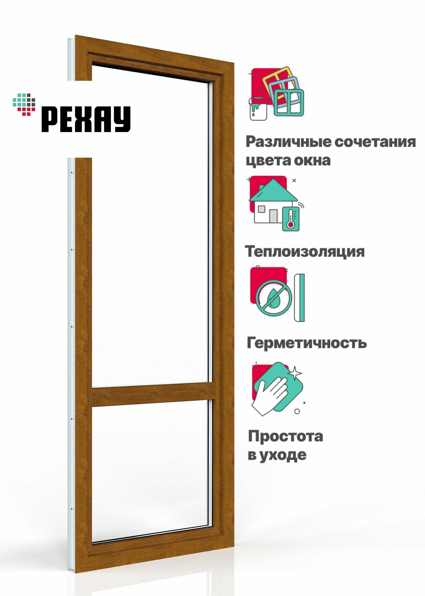 Пластиковая дверь ПВХ балконная РЕХАУ BLITZ 2180х670 мм (ВхШ), левая, двухкамерный стеклопакет, внешний цвет золотой дуб