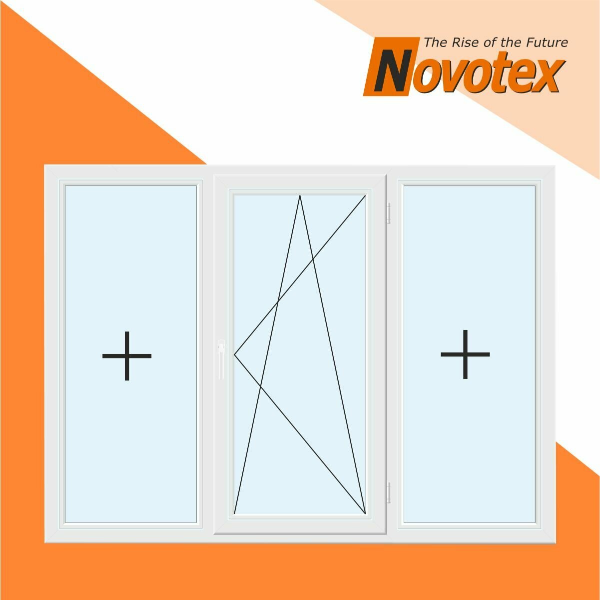 Окно 1900х900 мм Трехстворчатое тип1 (Средняя створка поворотно откидная, крайние глухие Novotex Techno 58 2 камеры интересное:
