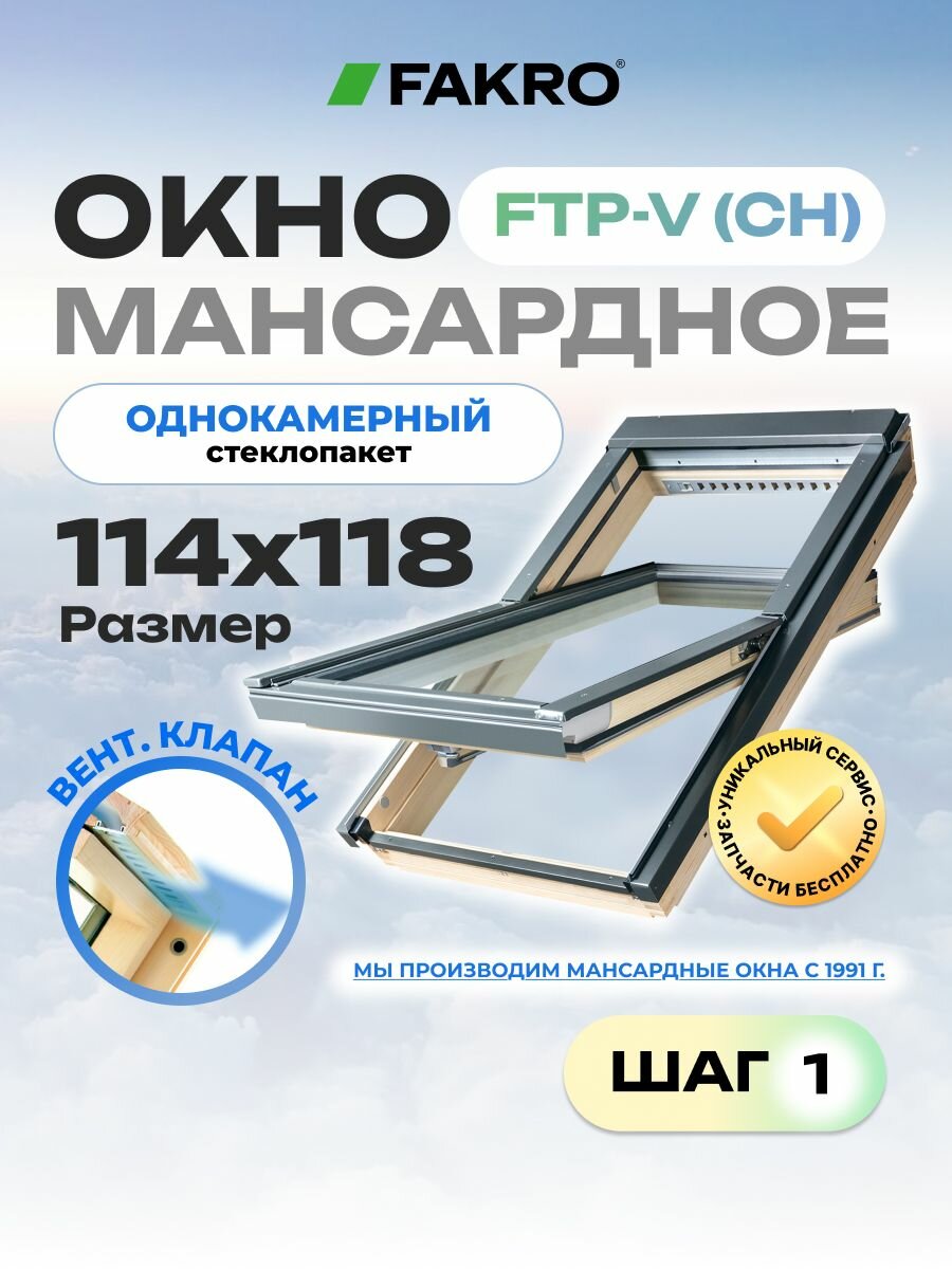 СохранитьМансардное окно 114*118 FTP-V (CH) FAKRO с однокамерным стеклопакетом и вентиляционным клапаном интересное: