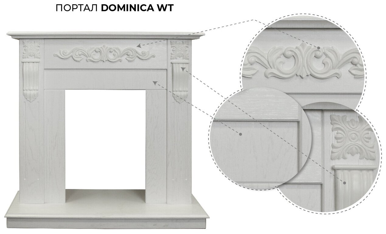 Портал каминный из МДФ RealFlame Dominica белый, под очаги (Majestic, Fobos, Eugene, 3D Olympic, 3D Oregan) интересное:
