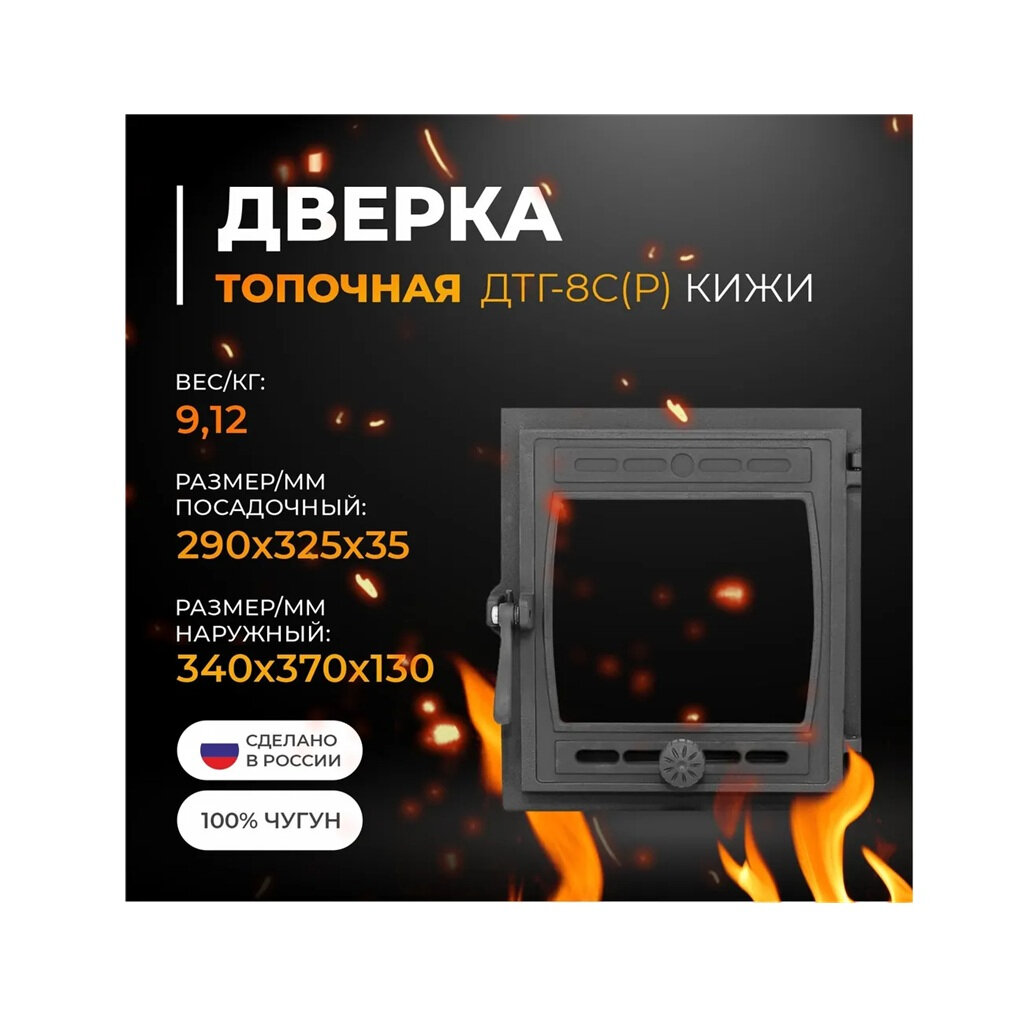 Дверка топочная Рубцовский литейный комплекс Кижи ДТГ-8С окрашенная без стекла 35х290x325 мм интересное: