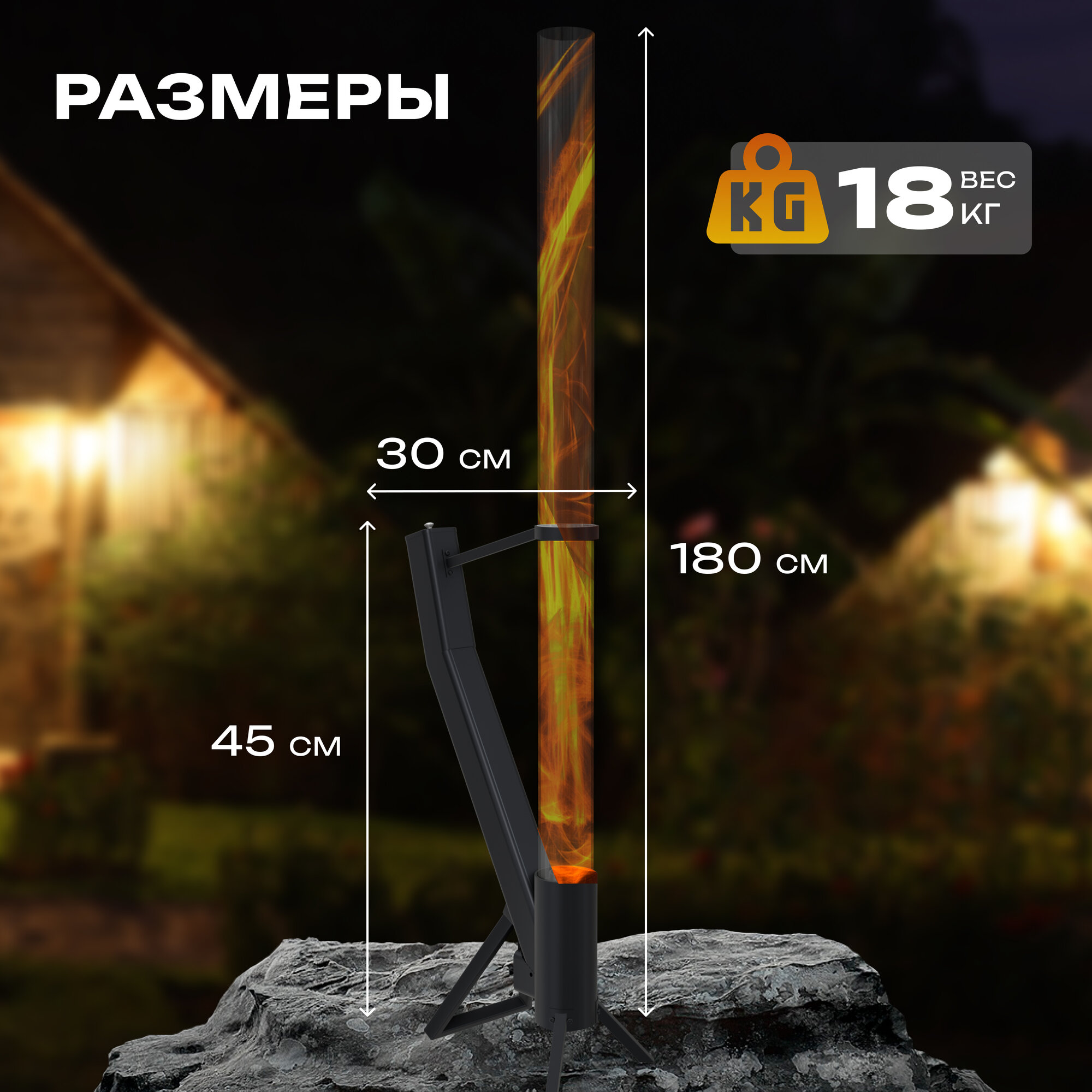 Напольный биокамин торнадо TO100, уличный, высота 180 см интересное: