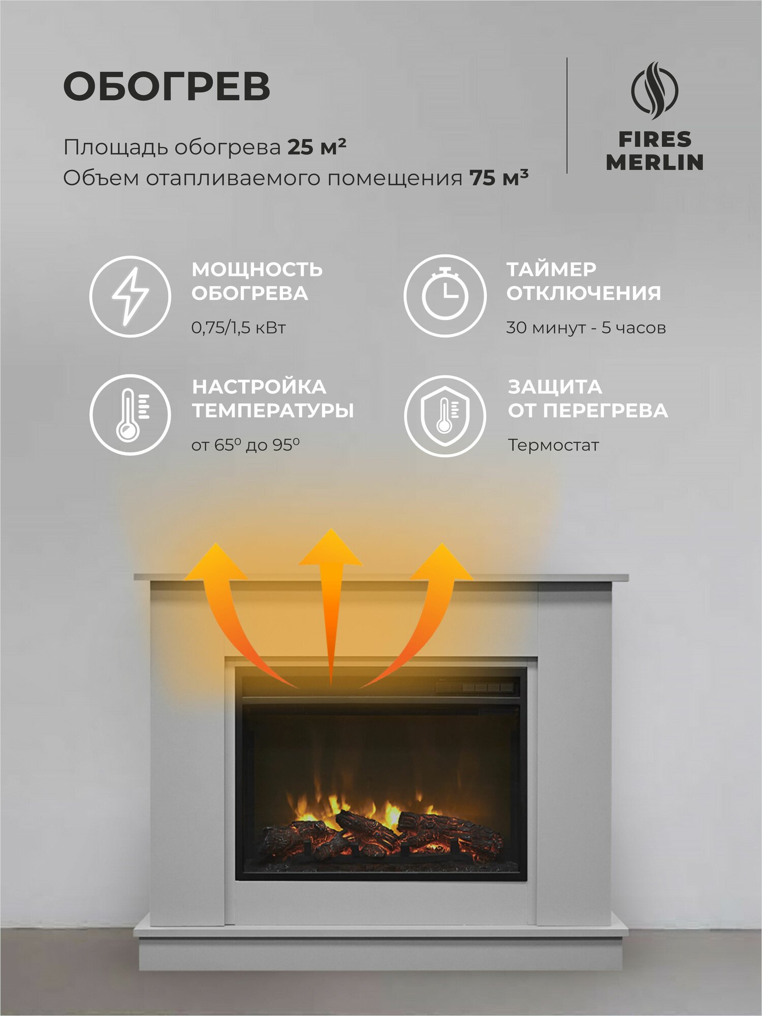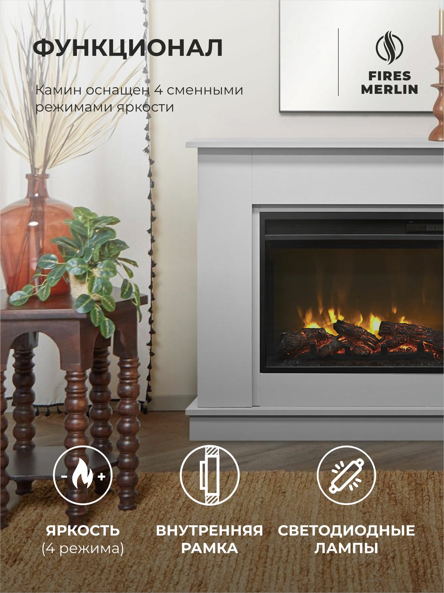Электрокамин Fires Merlin Lord GR серый c очагом, звуковая имитация и пульт ДУ, современный стиль интересное: