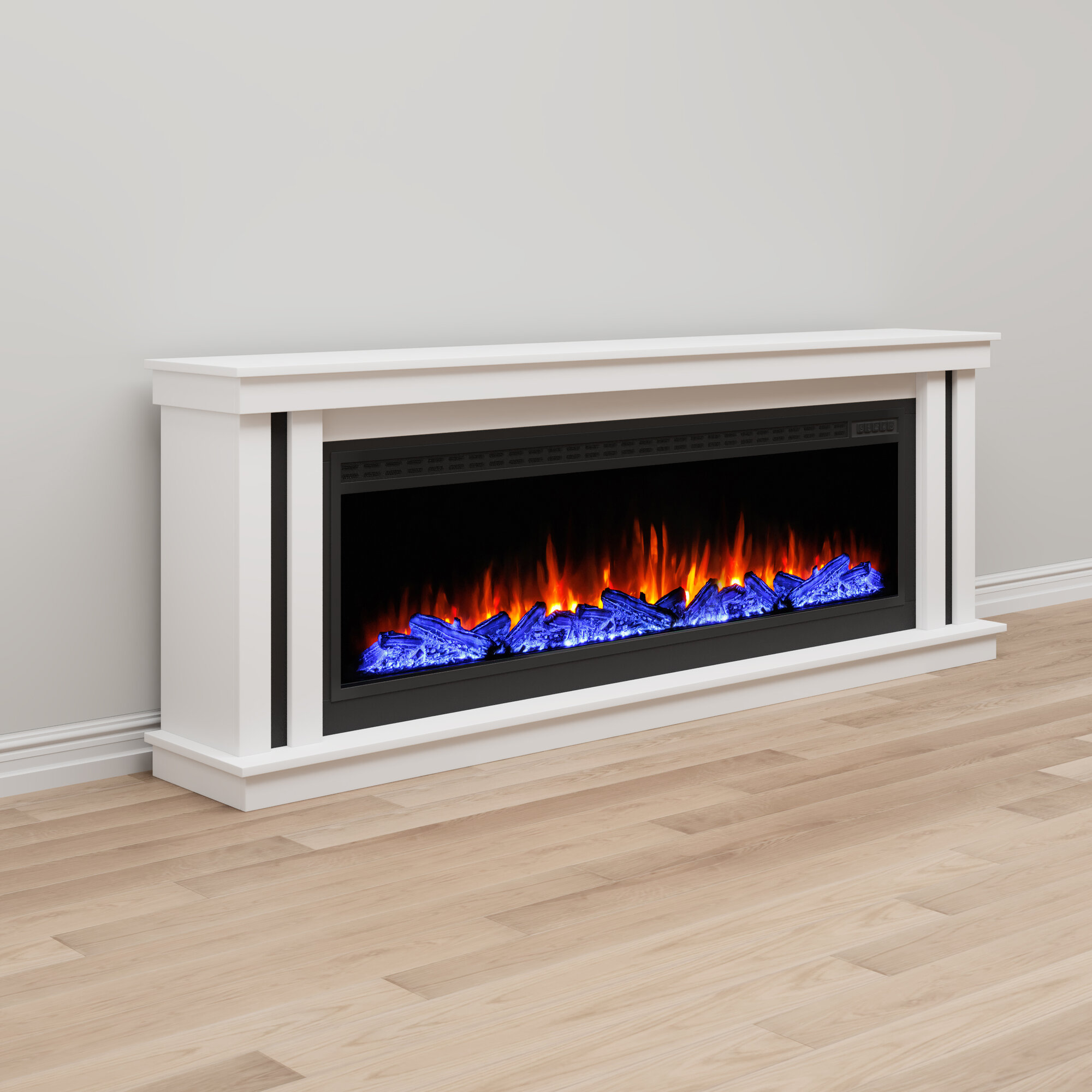 Электрический камин навесной ELEKAM Pulsar31 с очагом и порталом, обогревом и имитацией живого огня