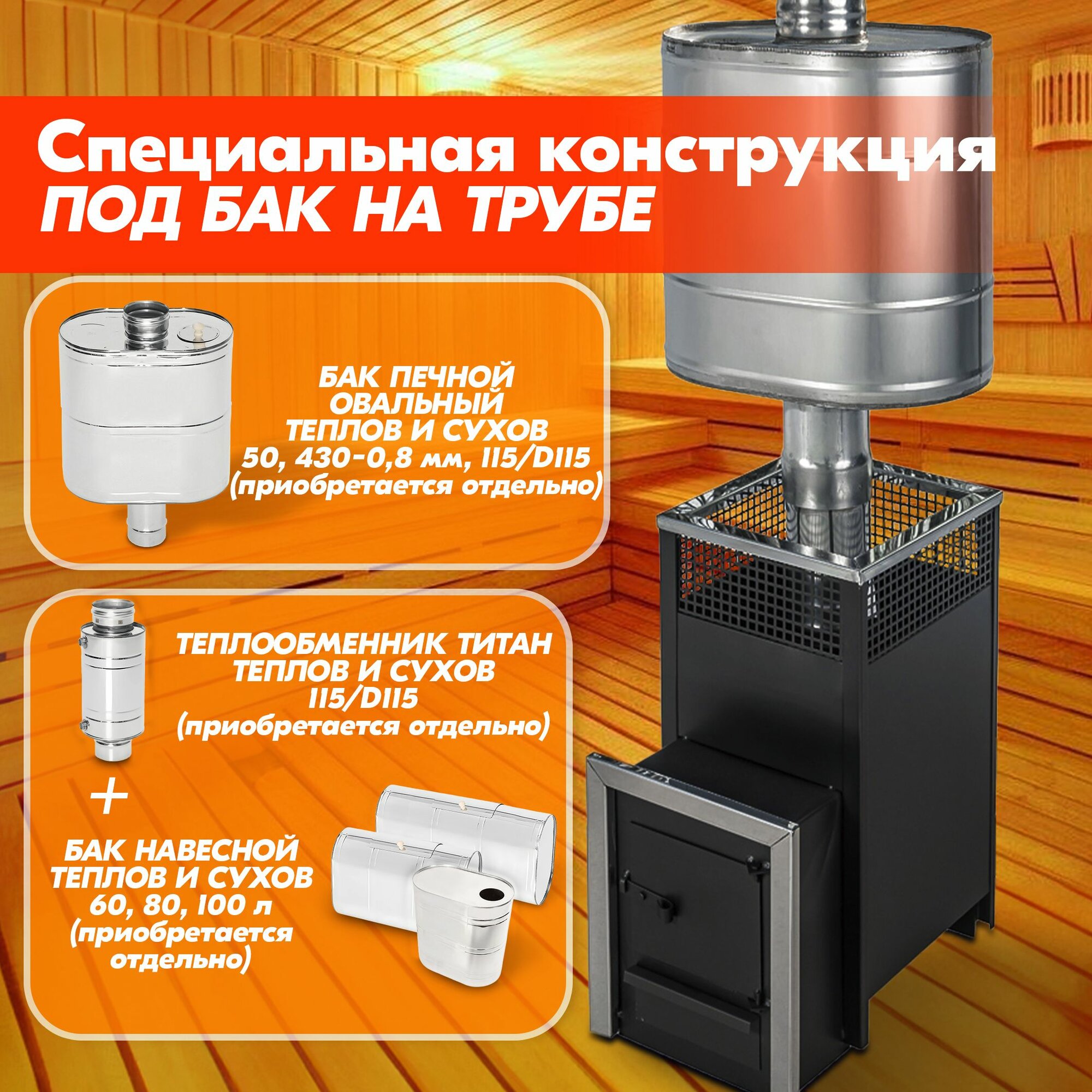 Радуга печь для бани ПБ-30Б (под навесной бак 45/55л) УК 8мм, банная печь дровяная с закрытой каменкой