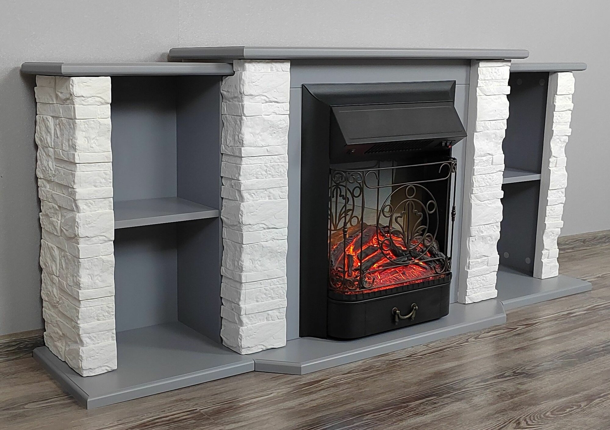 Камин Мальта с тумбами, очаг Majestic, Серый/камень белый(комплект) интересное: