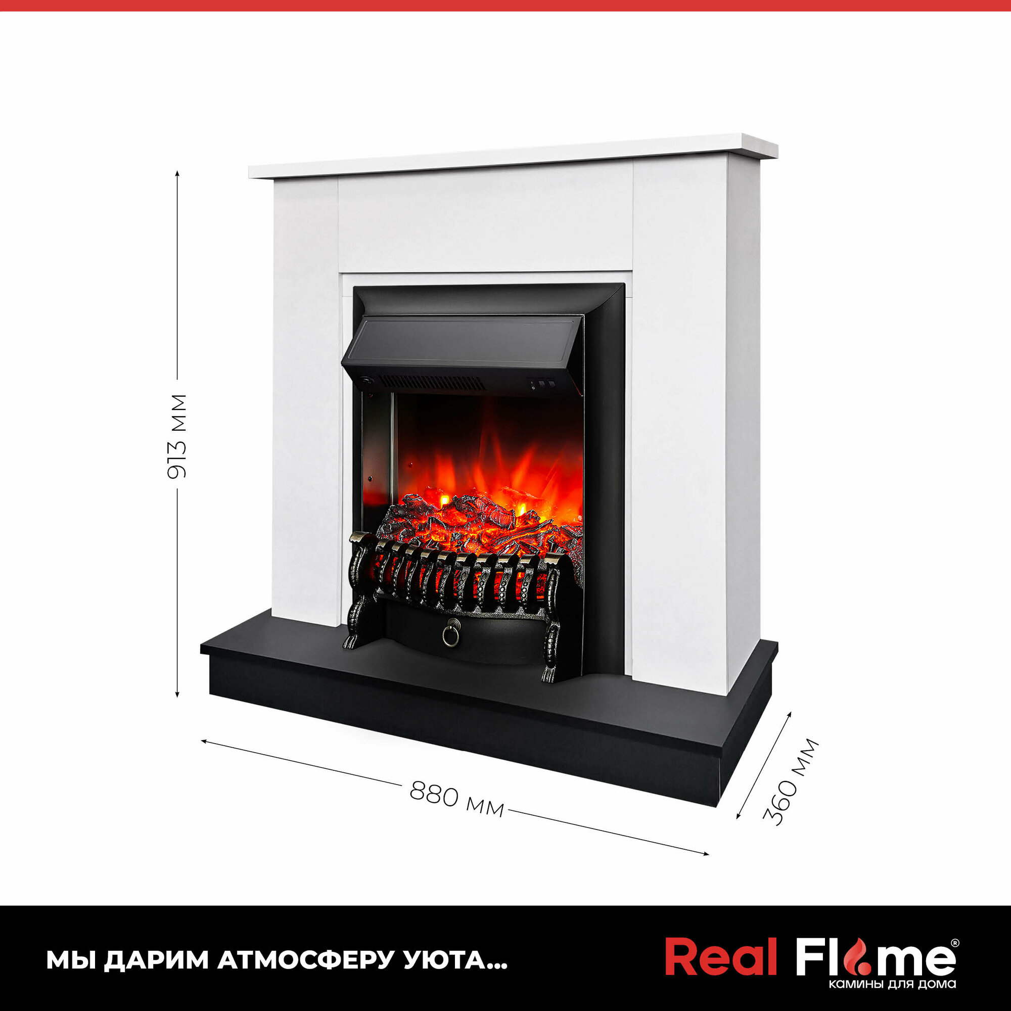 Электрокамин RealFlame Nord бело черный МДФ с очагом Fobos, звук потрескивания дров, обогрев, имитация пламени интересное:
