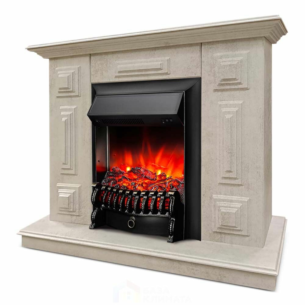Купить Камин электрический хорошие камины Юпитер серый с очагом Fobos Lux Black, с обогревом и звуком потрескивания дров