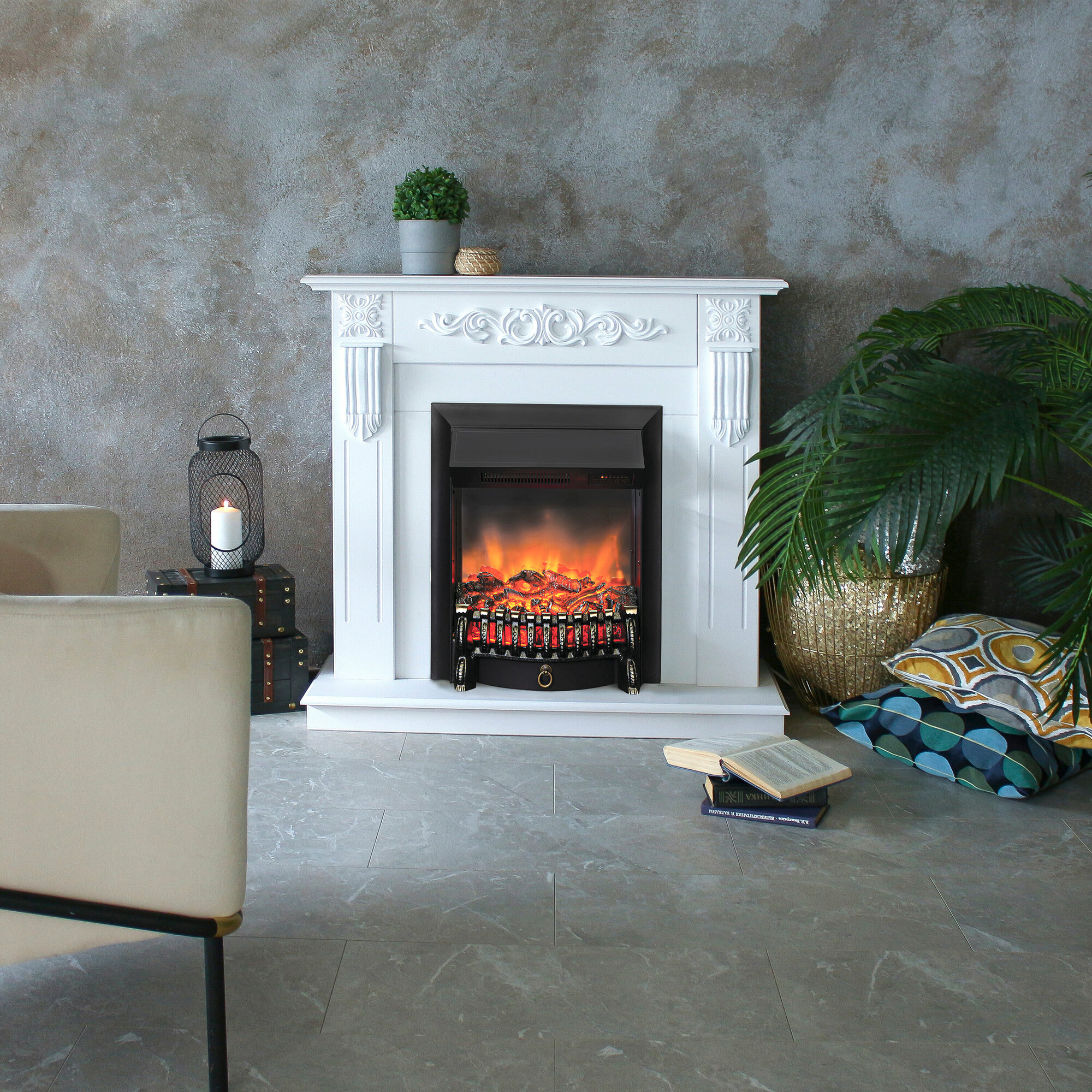 Купить Электрокамин RealFlame Dominica WT МДФ с очагом Fobos, звуковая имитация, пульт ДУ, обогрев