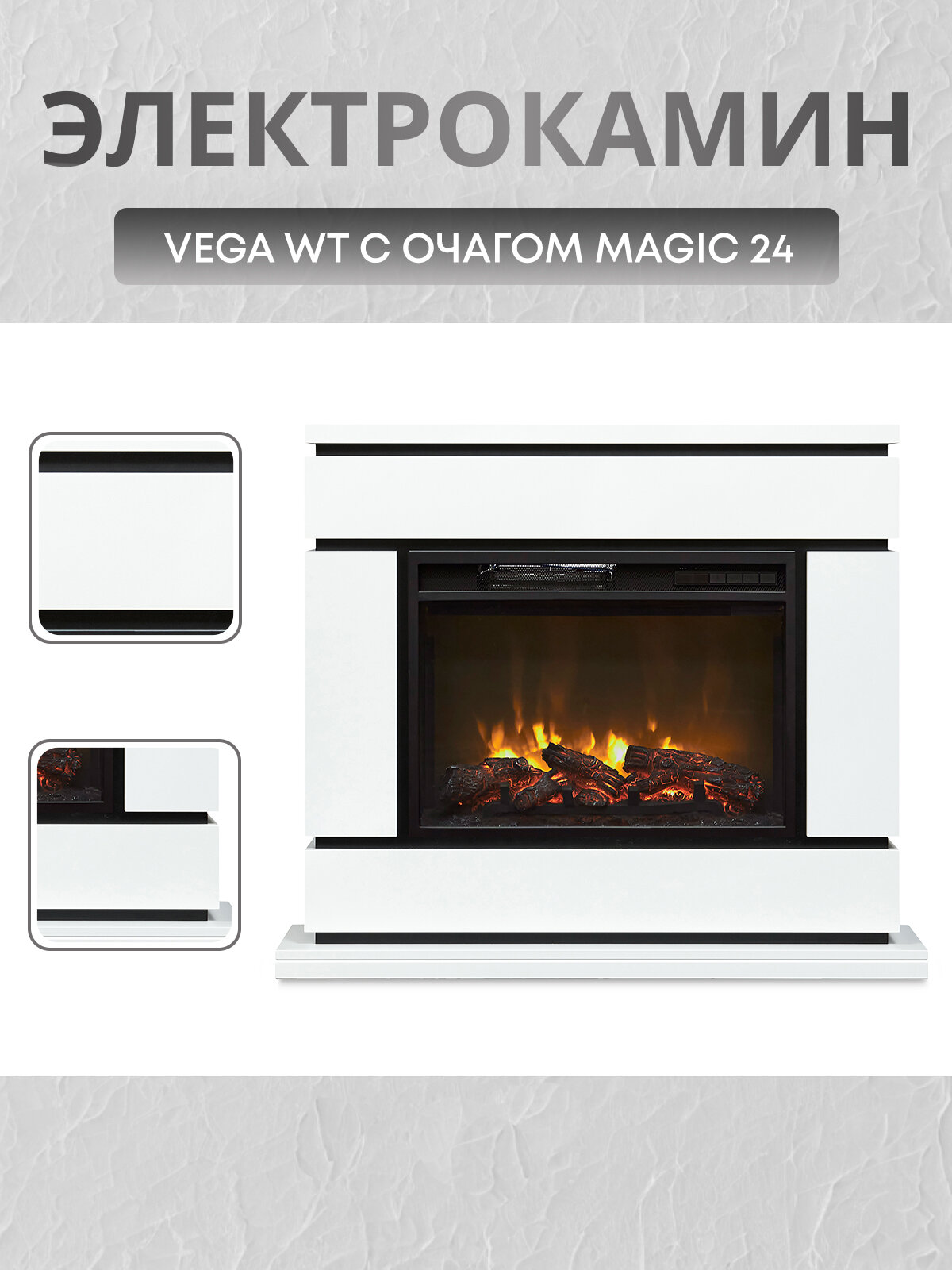 Купить Камин электрический Vega WT напольный с очагом Magic 24, пульт ду, звук потрескивания дров, обогрев