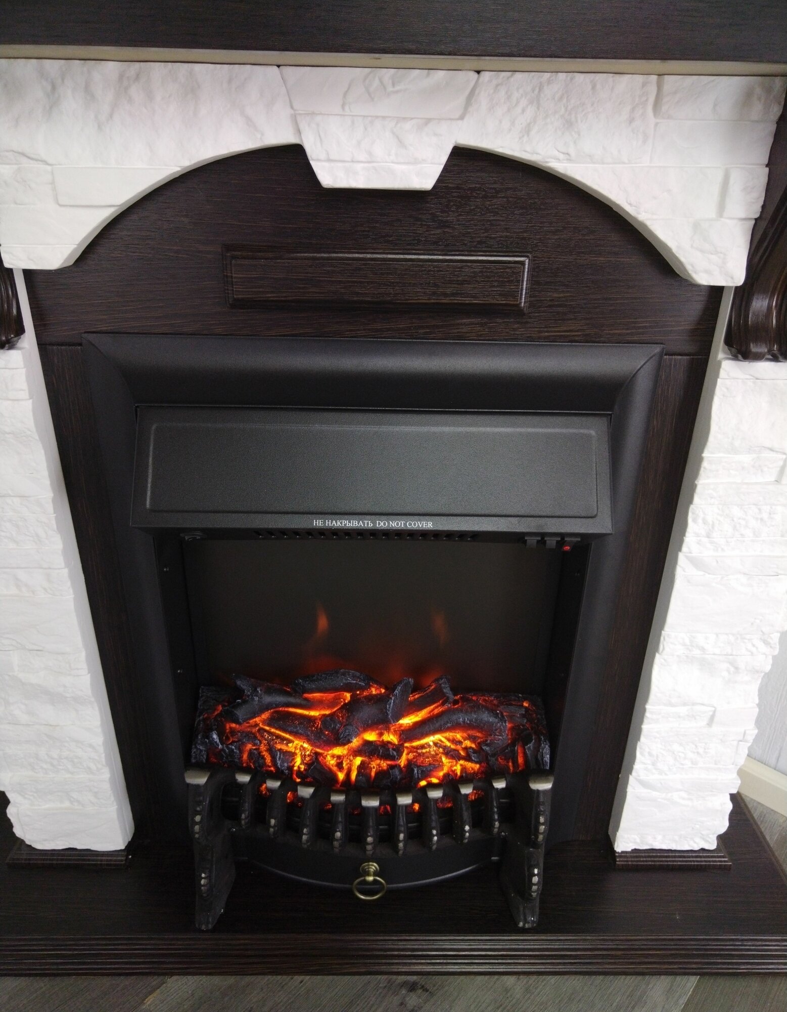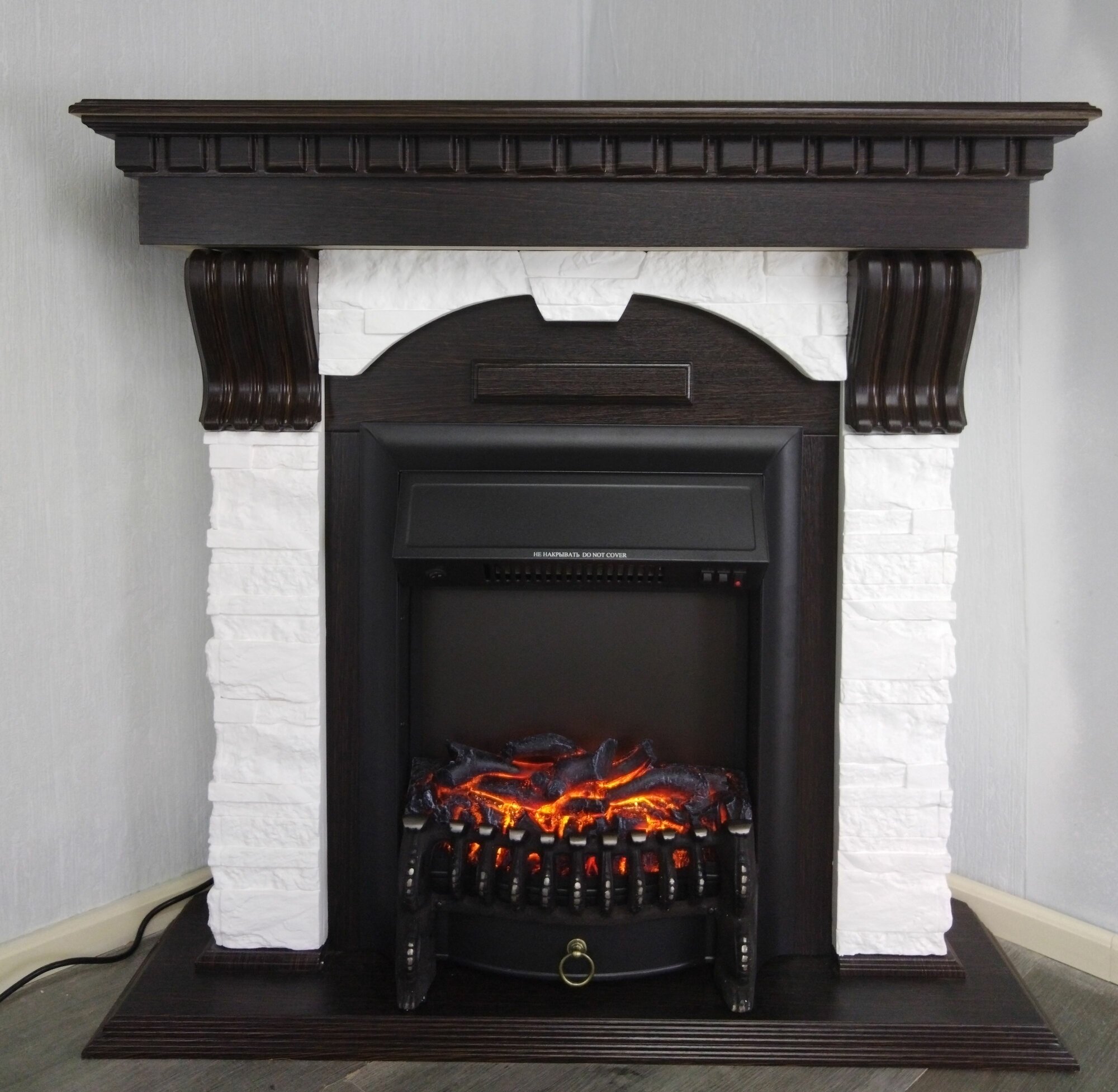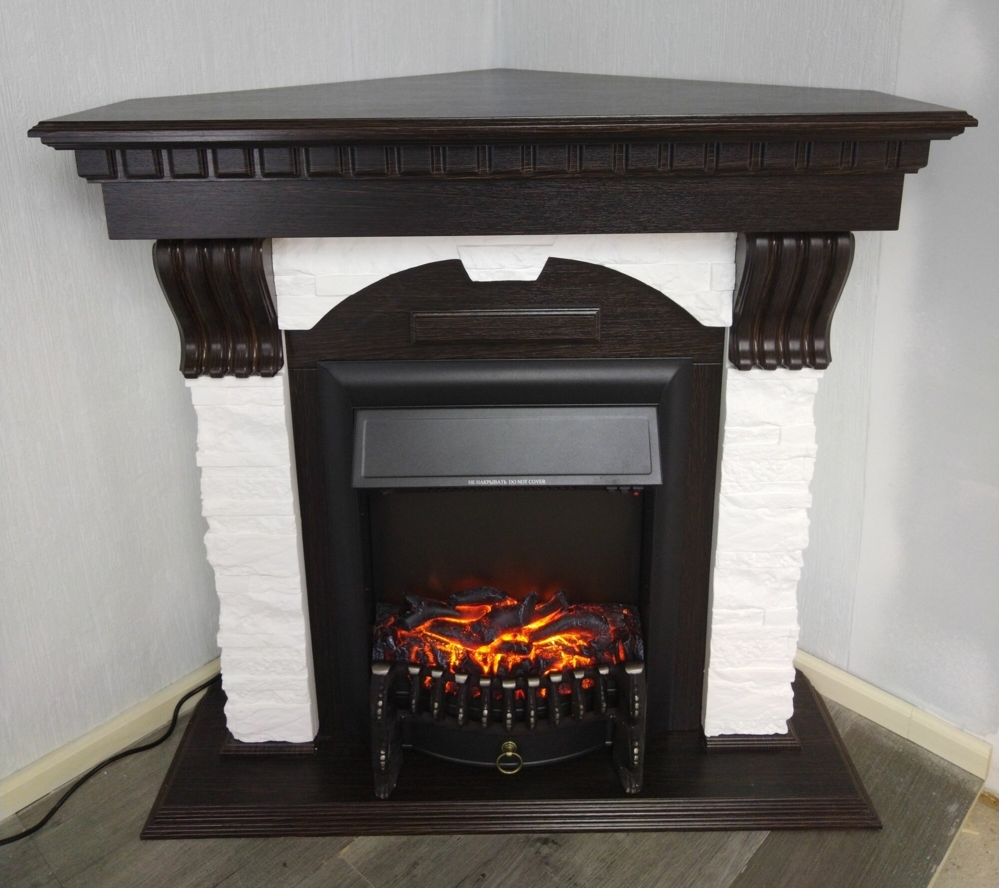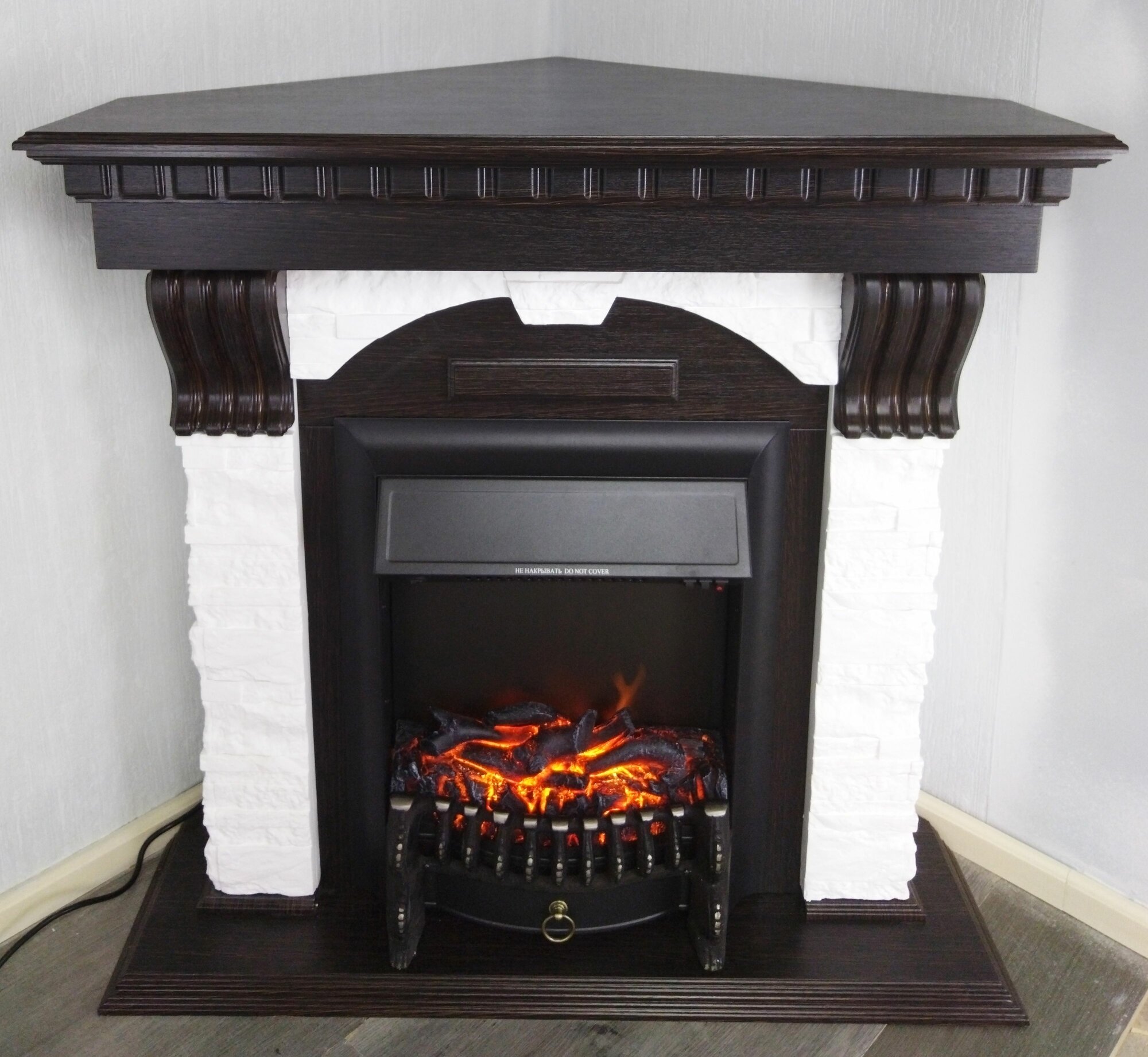 Угловой электрокамин Дублин с очагом Fobos, Венге/камень белый интересное: