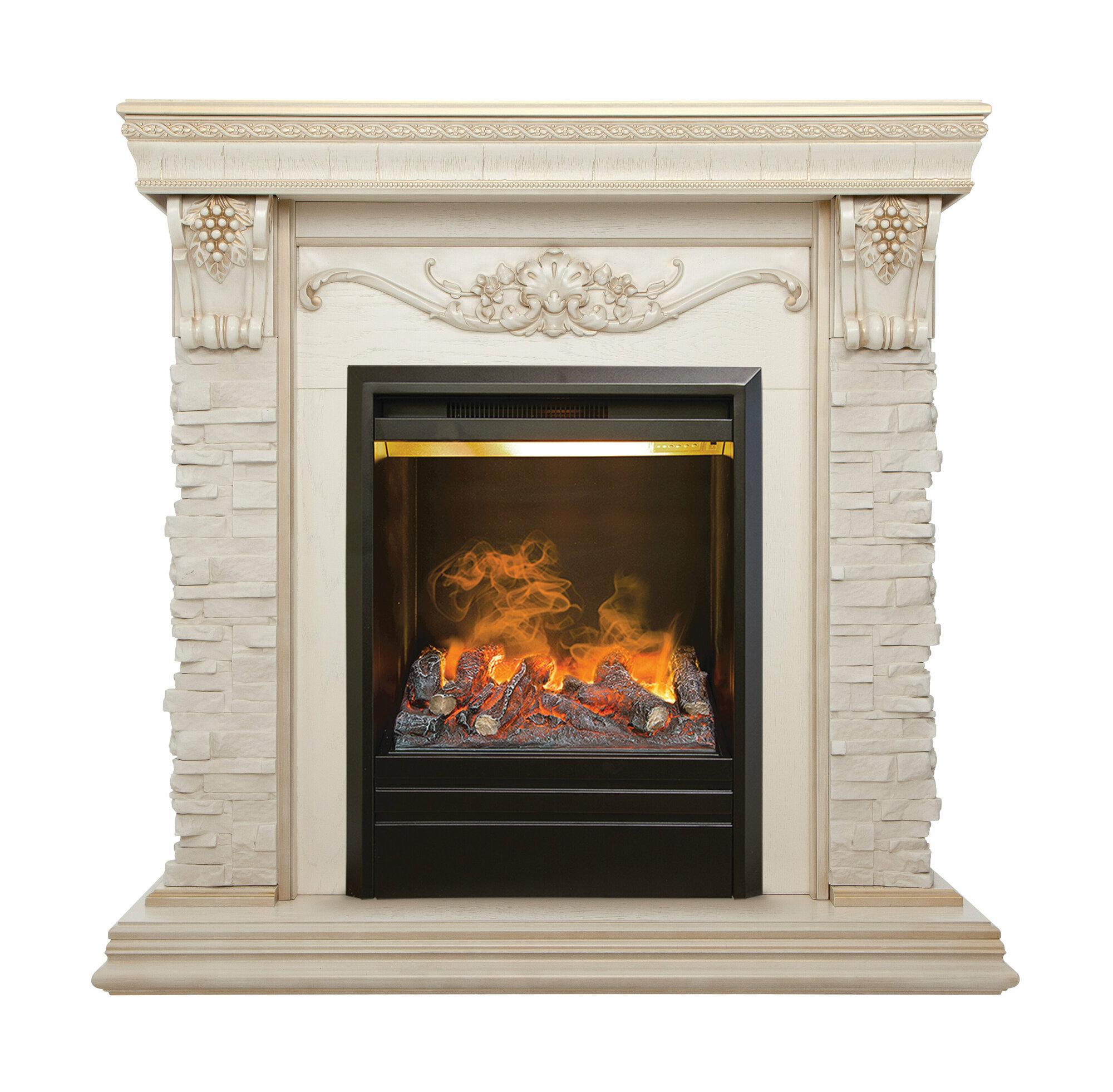 Электрокамин RealFlame Patricia WT МДФ с очагом Fobos, звуковая имитация, пульт ДУ, обогрев