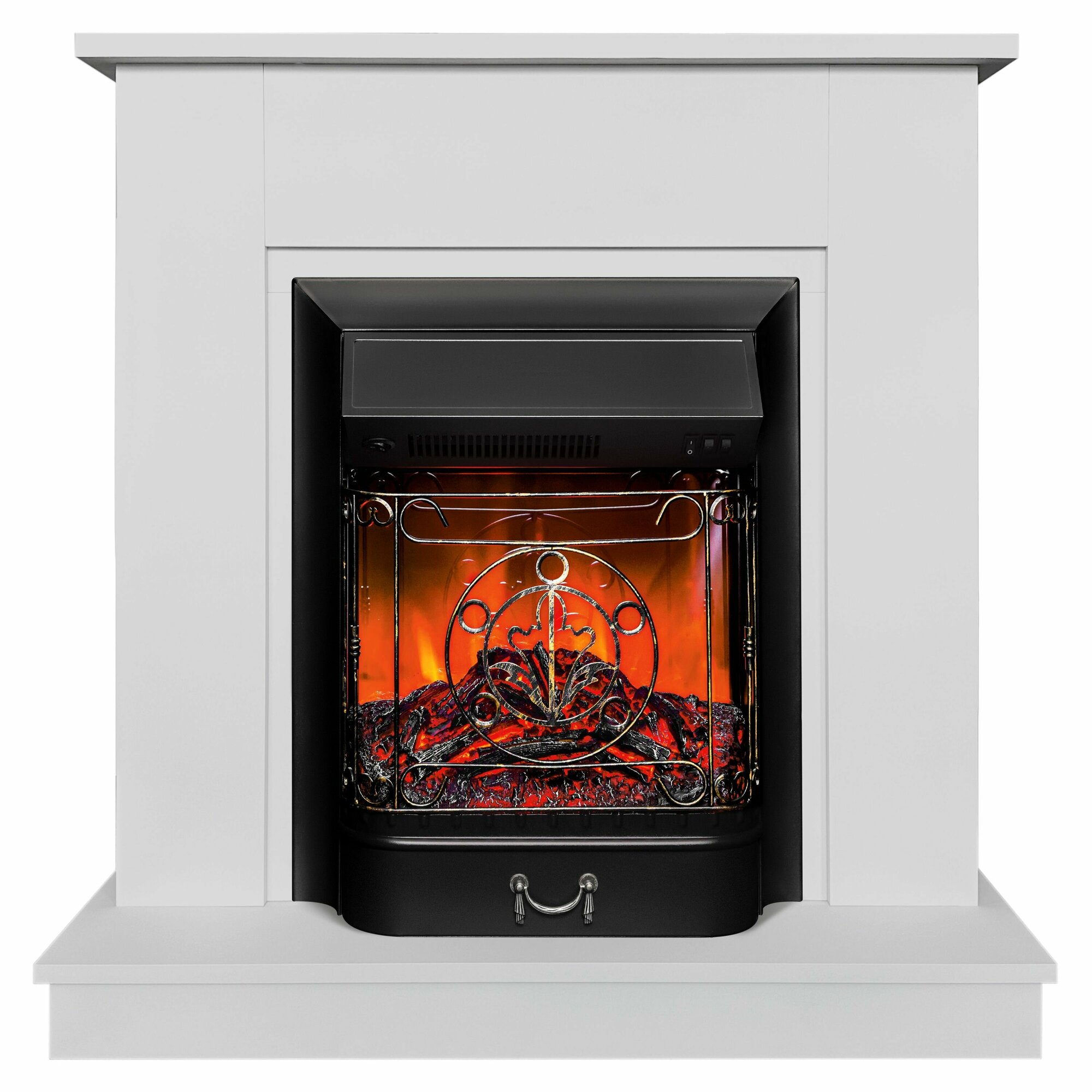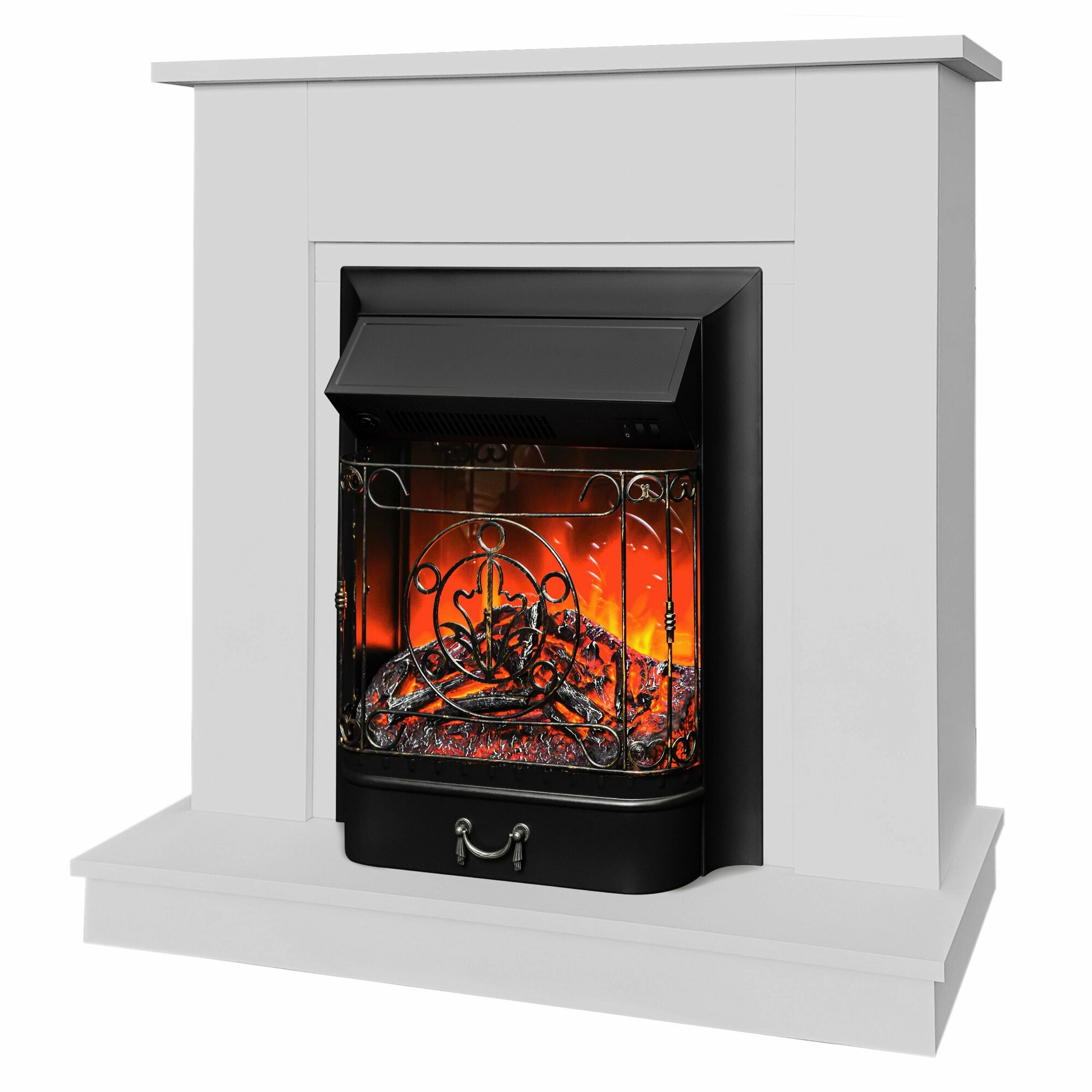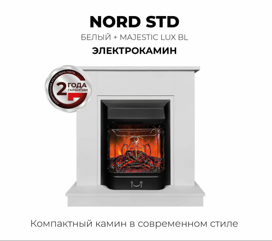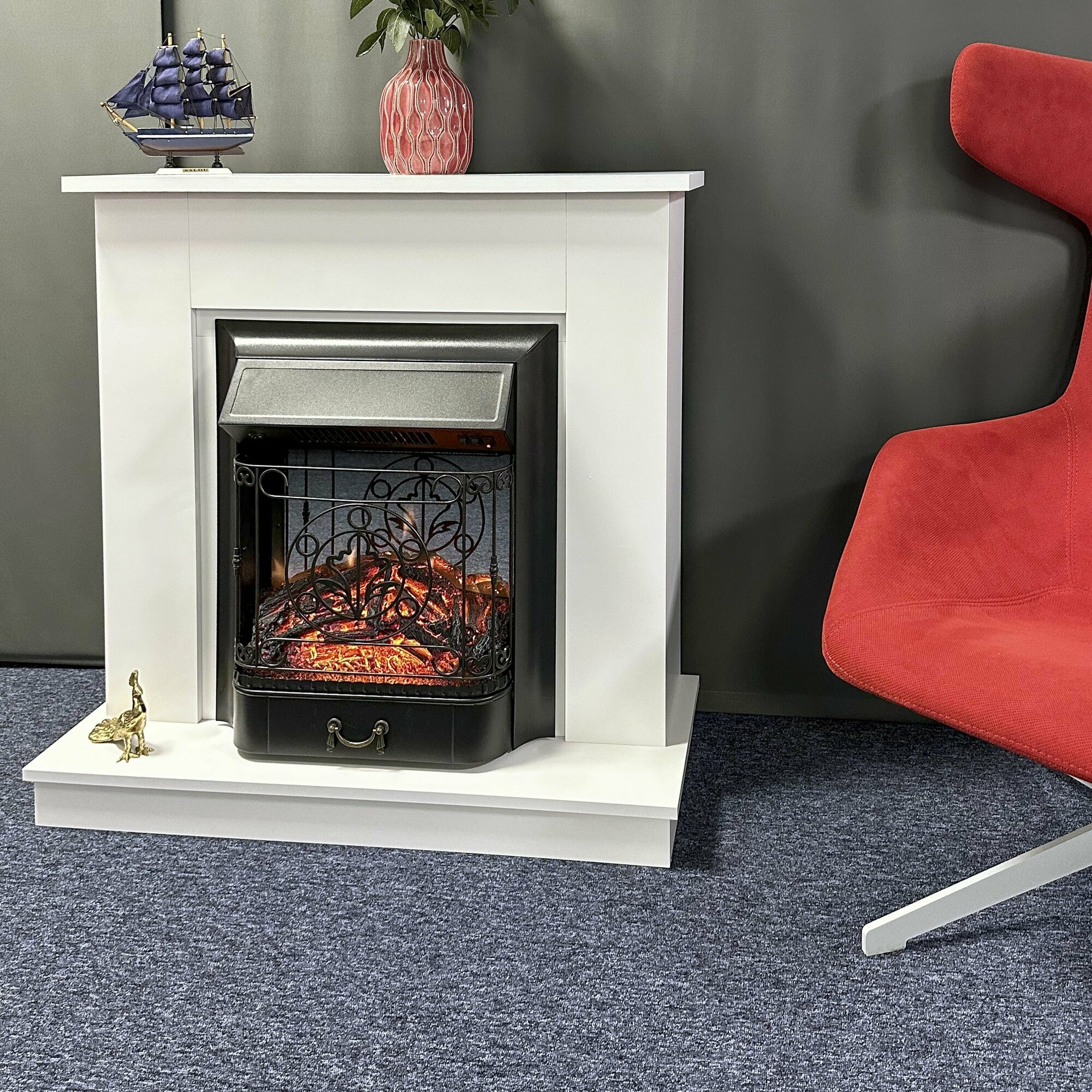 Камин электрический Fires Merlin Nord WT белый с очагом, пульт ДУ, с обогревом, эффект живого пламени