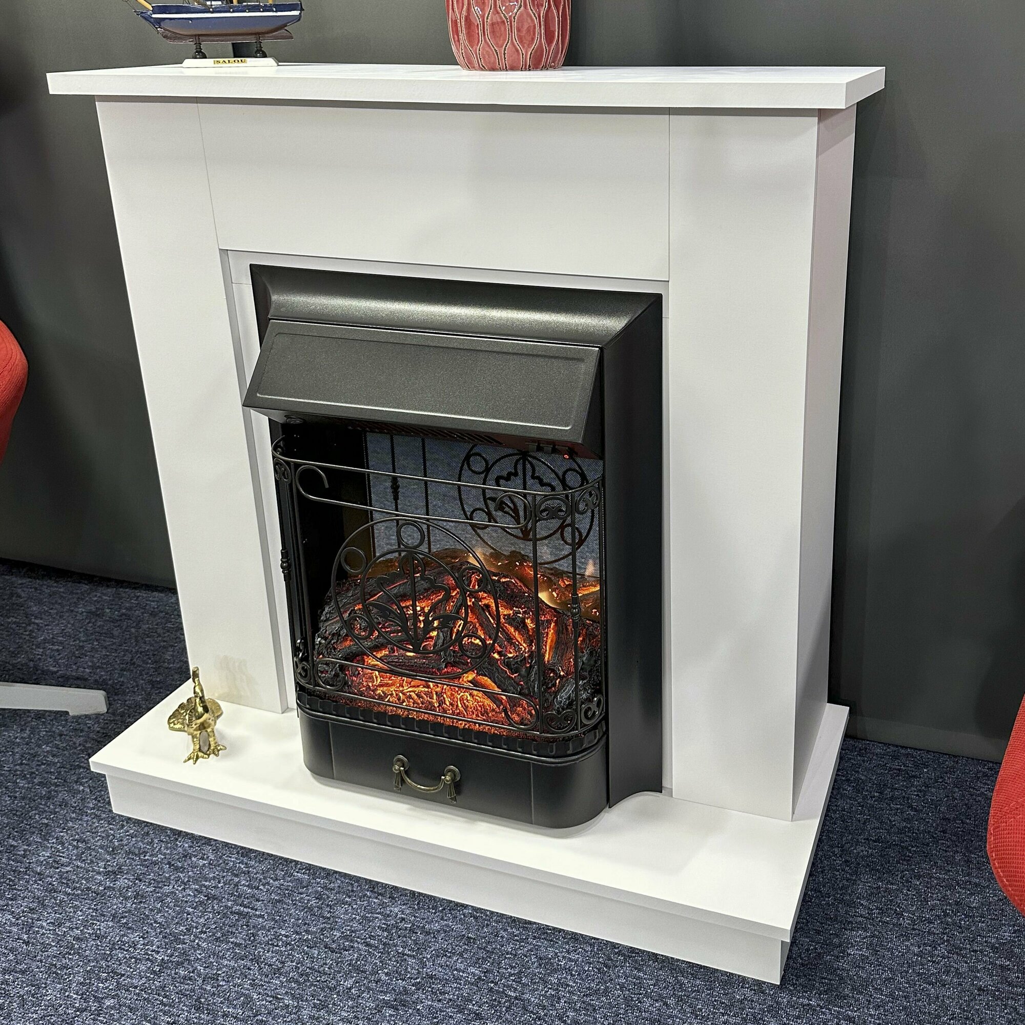 Камин электрический Fires Merlin Stockholm 50 белый c очагом Topaz 50 напольный, имитация звука и пламени, пульт