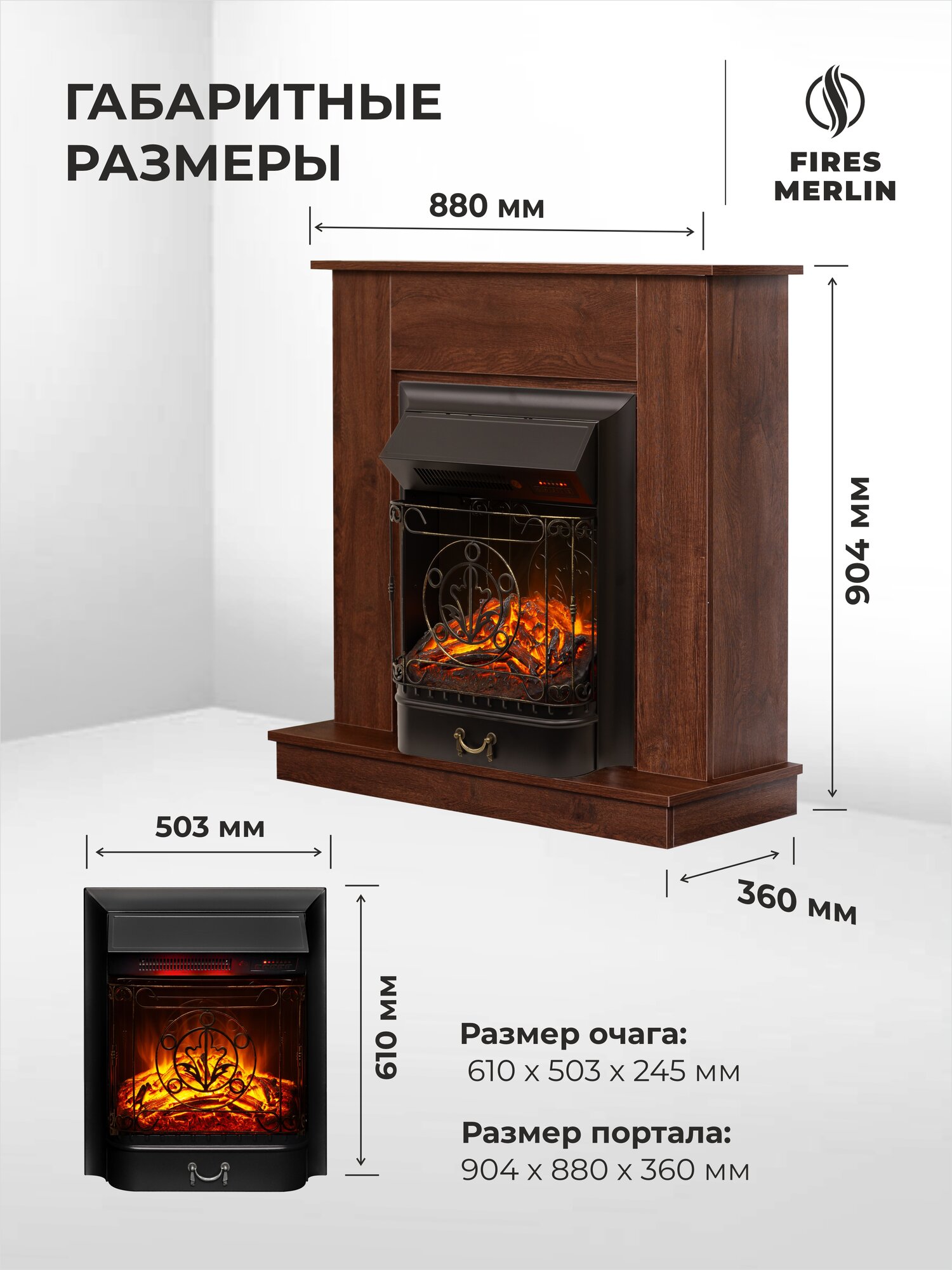 СохранитьКамин электрический Fires Merlin Nord DN темный орех с очагом, пульт ДУ, с обогревом, эффект живого пламени интересное: