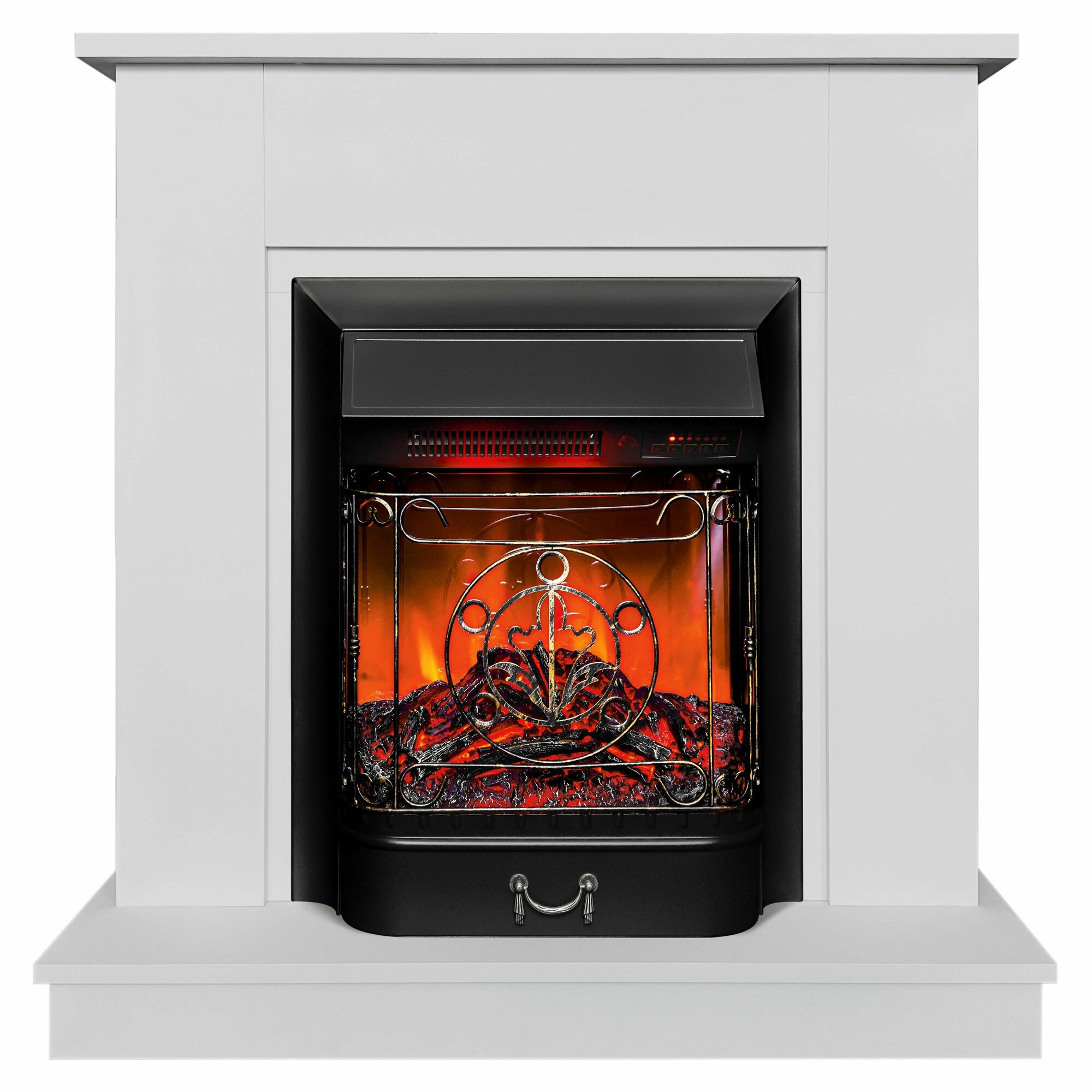 Камин электрический Fires Merlin Nord WT белый с очагом, пульт ДУ, с обогревом, эффект живого пламени