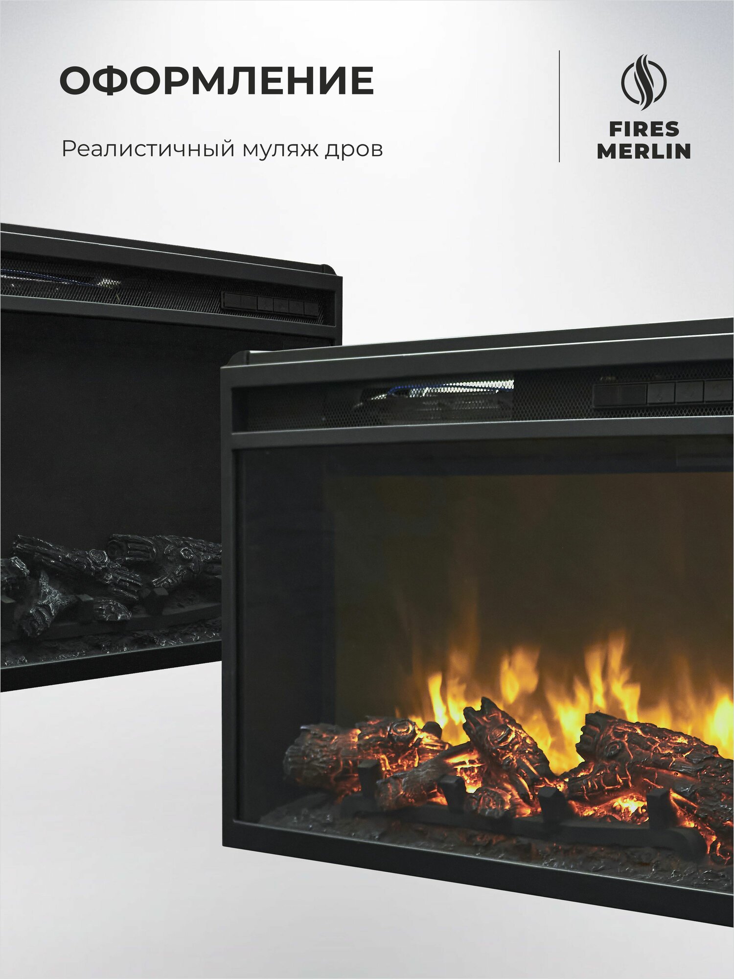 Электрокамин Fires Merlin Lord дуб санома c очагом, звуковая имитация и пульт ДУ, современный стиль