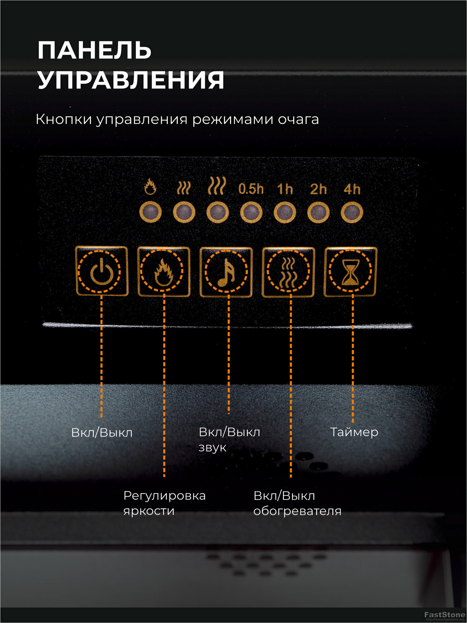 Камин электрический Fires Merlin Nord DN темный орех с очагом, пульт ДУ, с обогревом, эффект живого пламени
