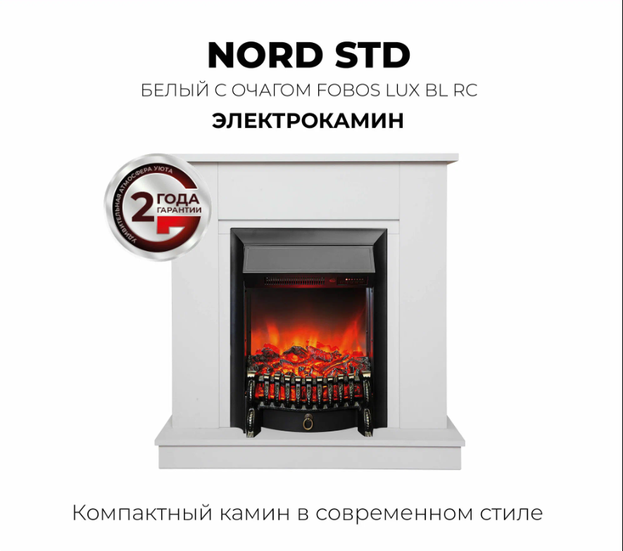 Камин электрический Fires Merlin Nord WT белый с очагом, пульт ДУ, с обогревом, эффект живого пламени
